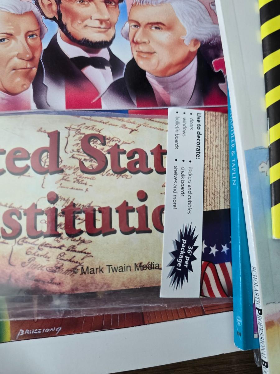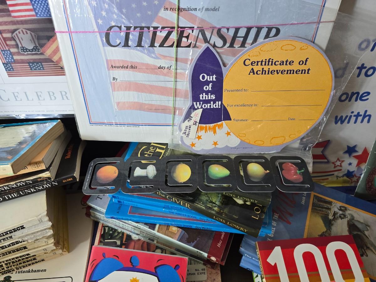 Collection of teacher guides, History, Books with more than 1 copy, posters, and other things teachers can use