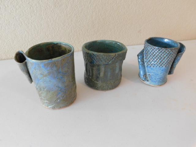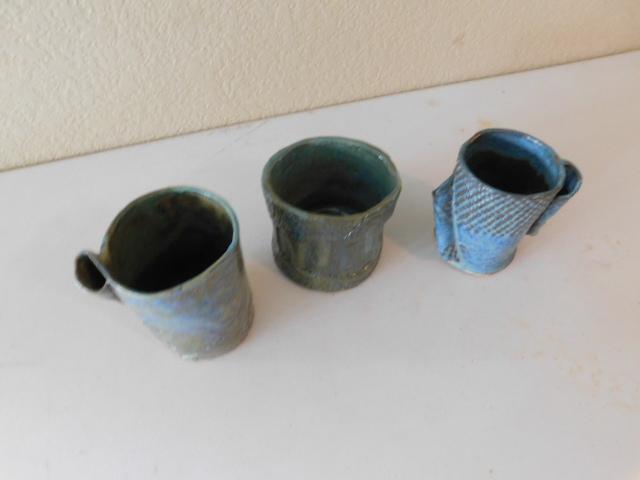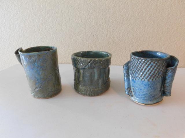 Collection of Three Hand Crafted Freeform Clay Pottery Vessels by Charyl Stone 5" avg.