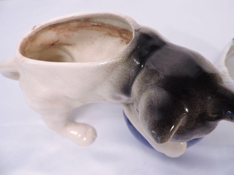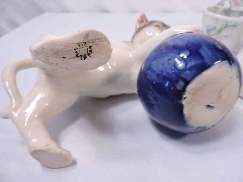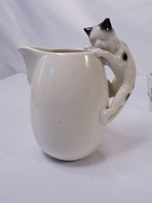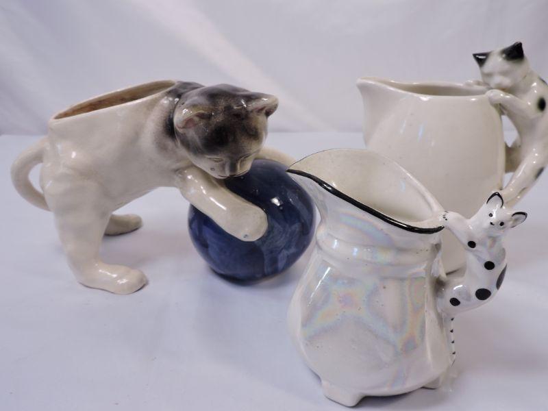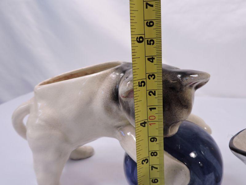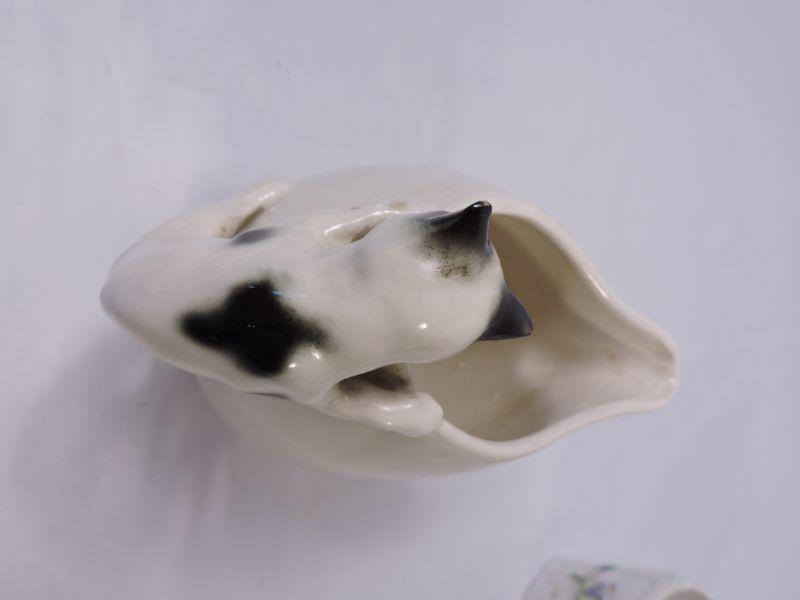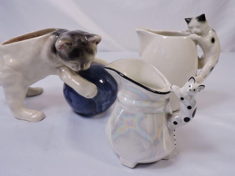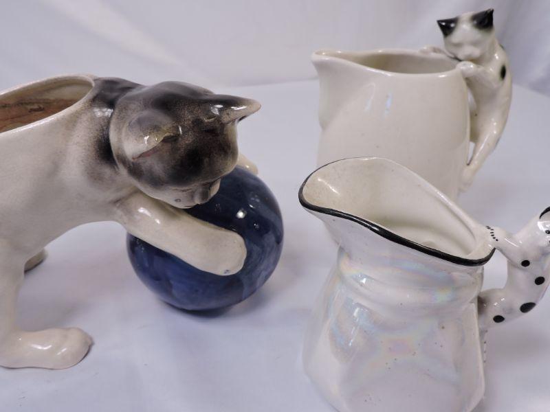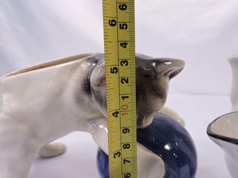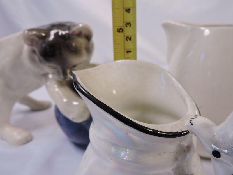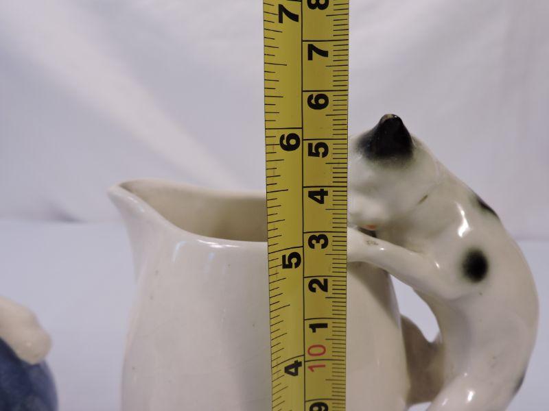 Collection of three vintage porcelain creamers and planter with kittens. **Please read Terms and Conditions before placing a bid. Pick up is Sunday, November 24 from 9am to 3pm or Tuesday, November 26 from 4pm-7pm in Mantua, NJ. All sales are final. All sales are as is, where is. Please review all photos. Any props included in photos are not included in listing. All measurements are approximate.