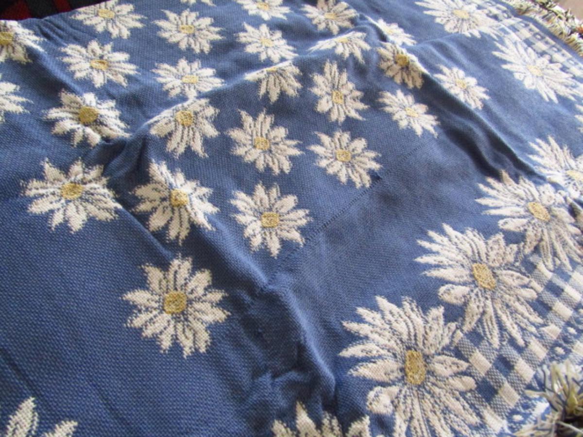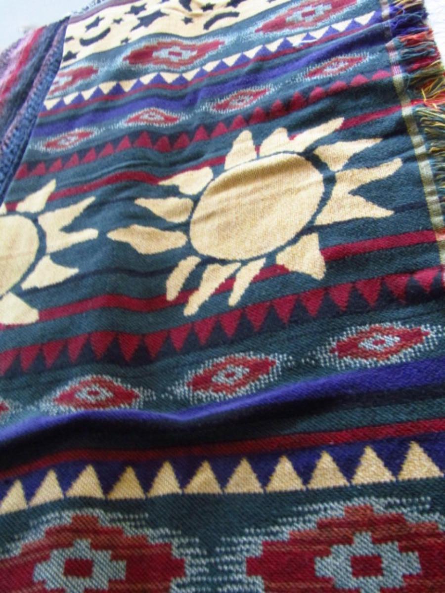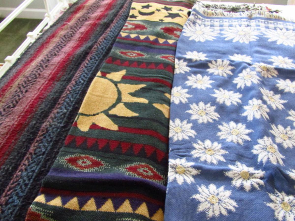 Collection of Throw Blankets (Upstairs). Three are woven, two are hand made (crochet).