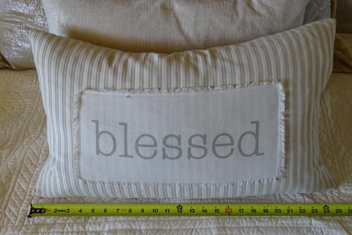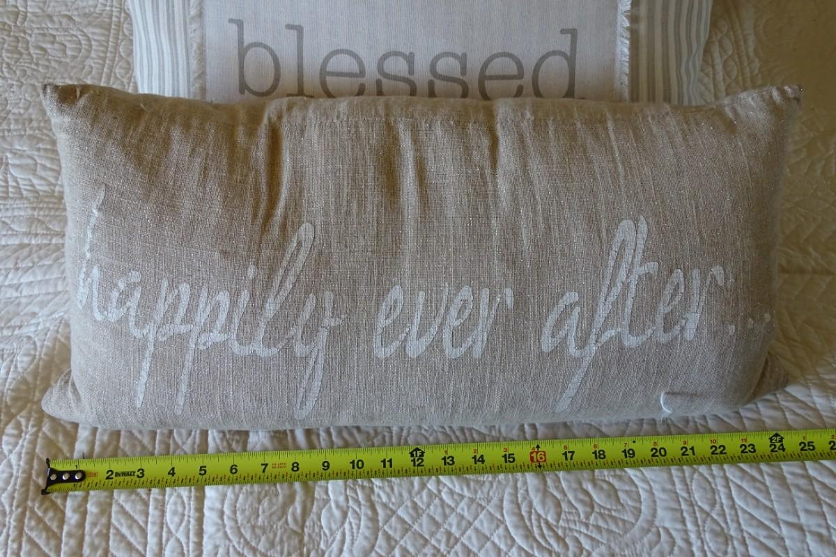 Five decorative throw pillows.
