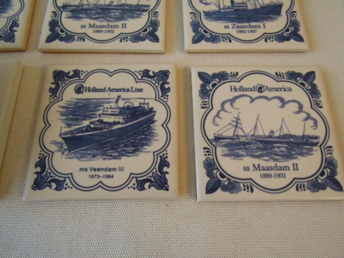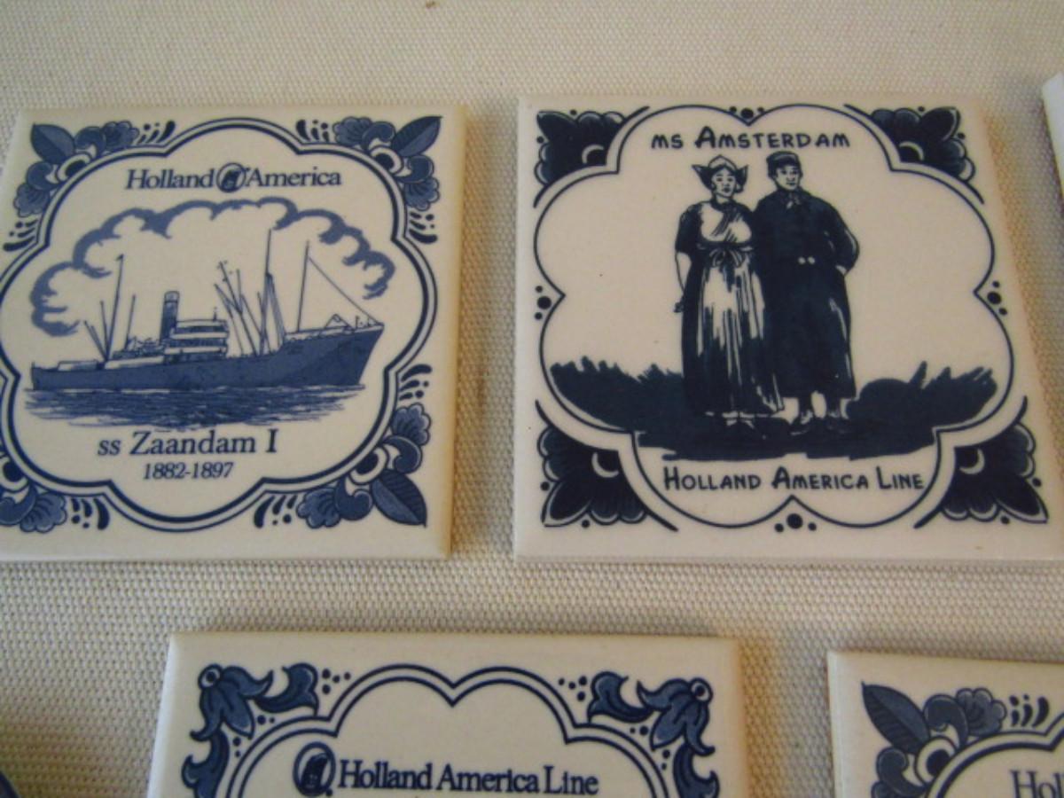 Collection of Tiles by Delft Blue from Holland America Cruise Line. Each approx 4" square.