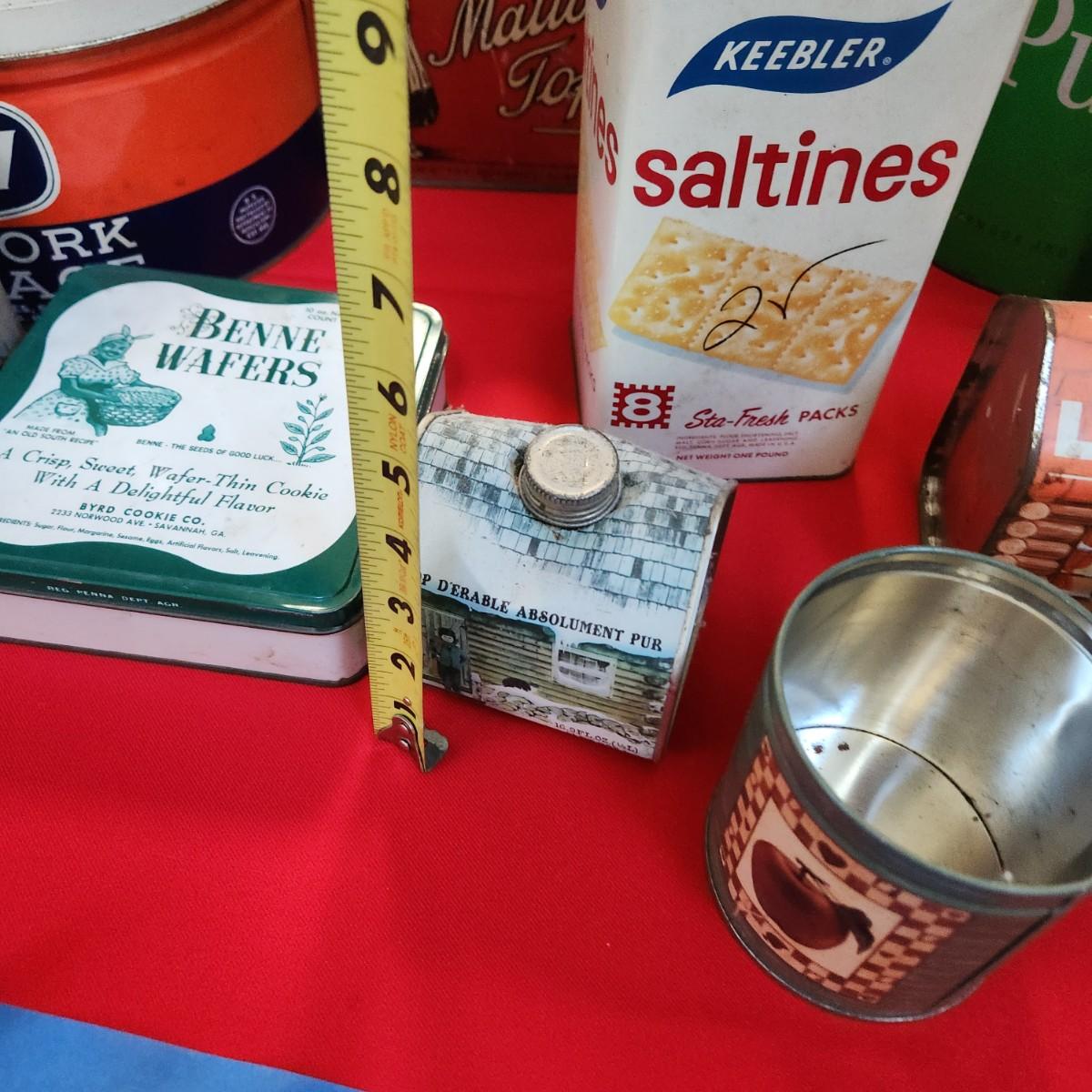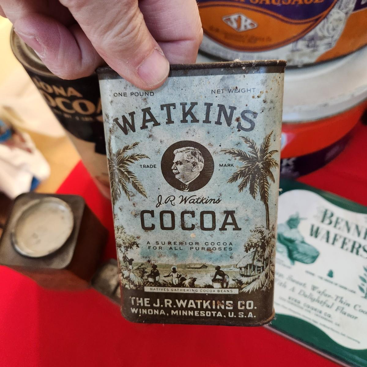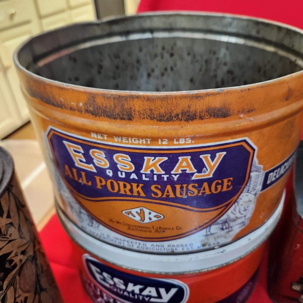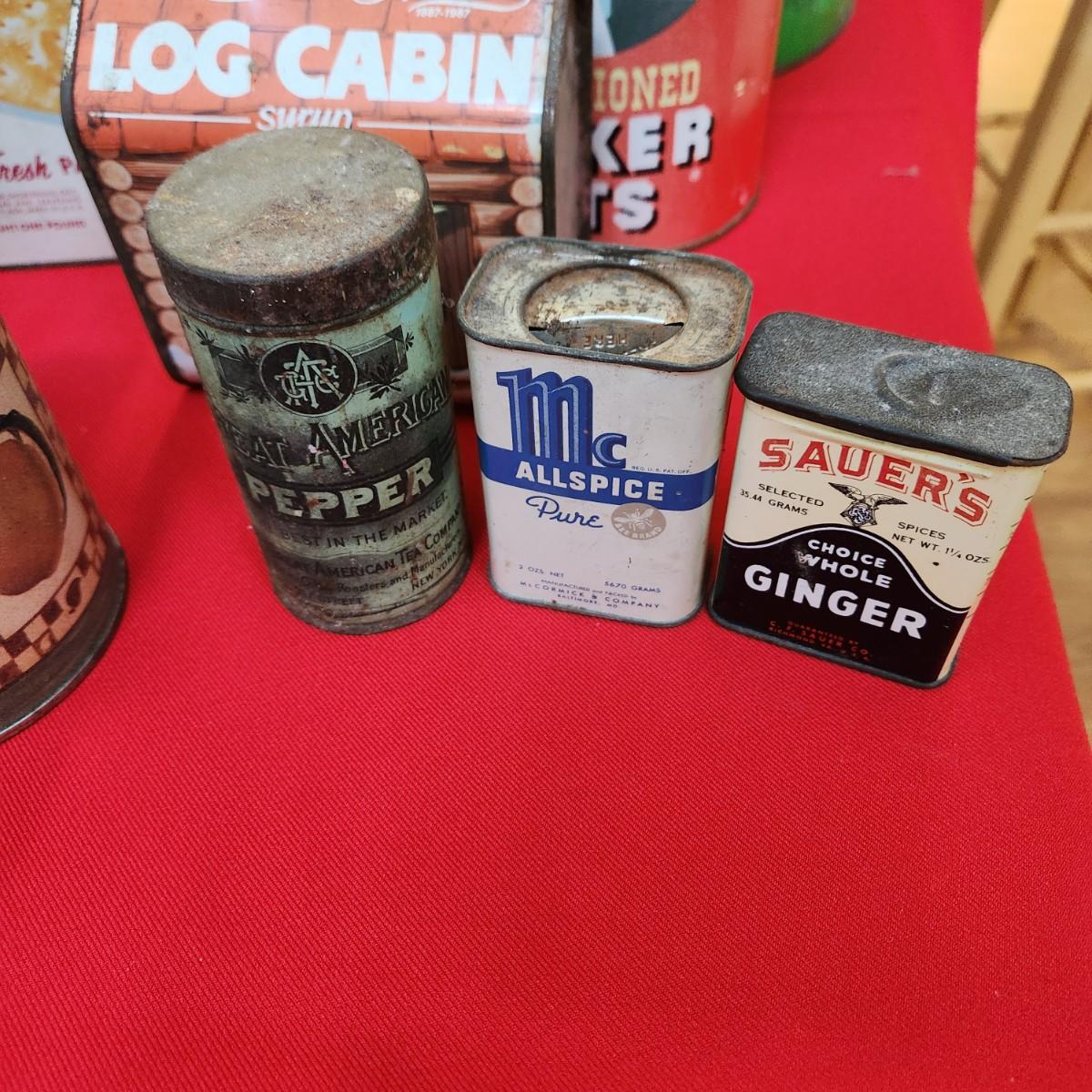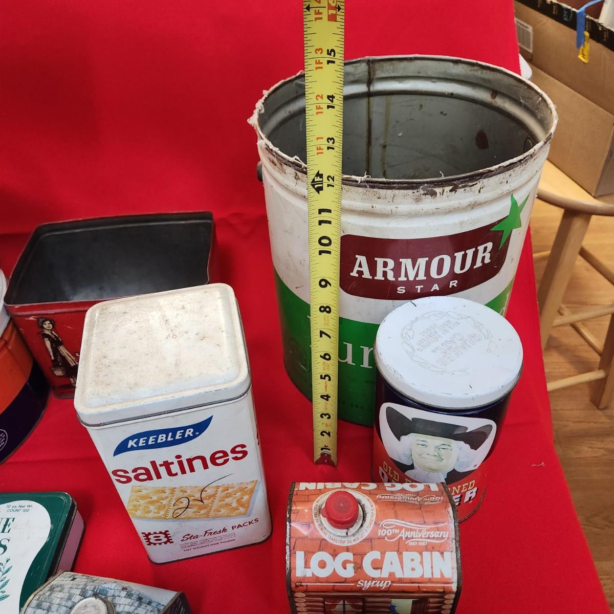 Collection of Tin Cans Esskay Meats Armour Lard Watkins Cocoa , Banquet Tea , McCormick Spices