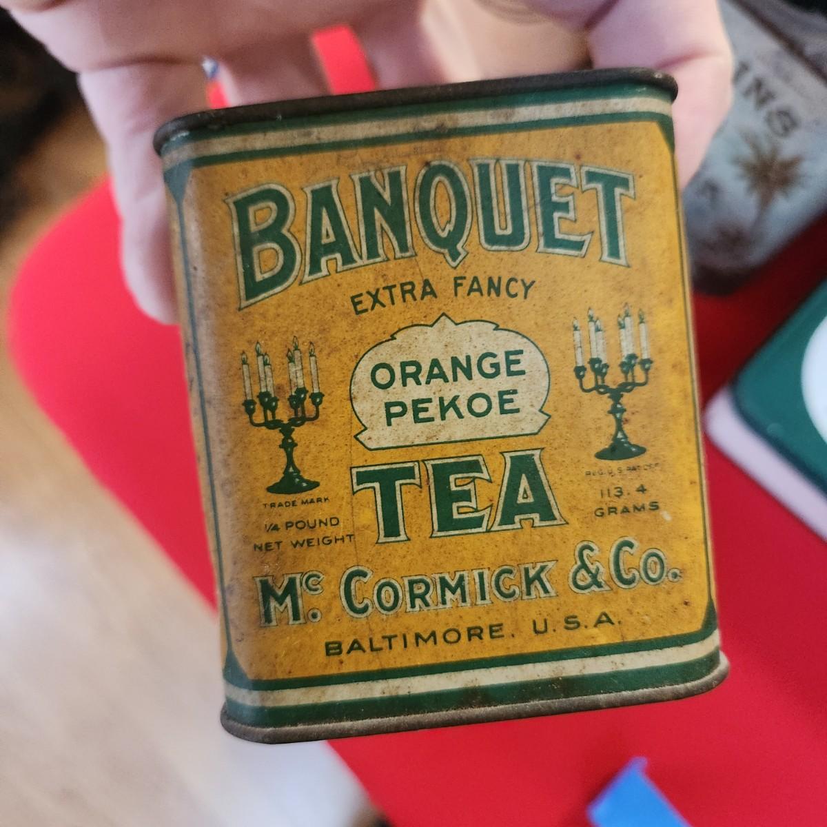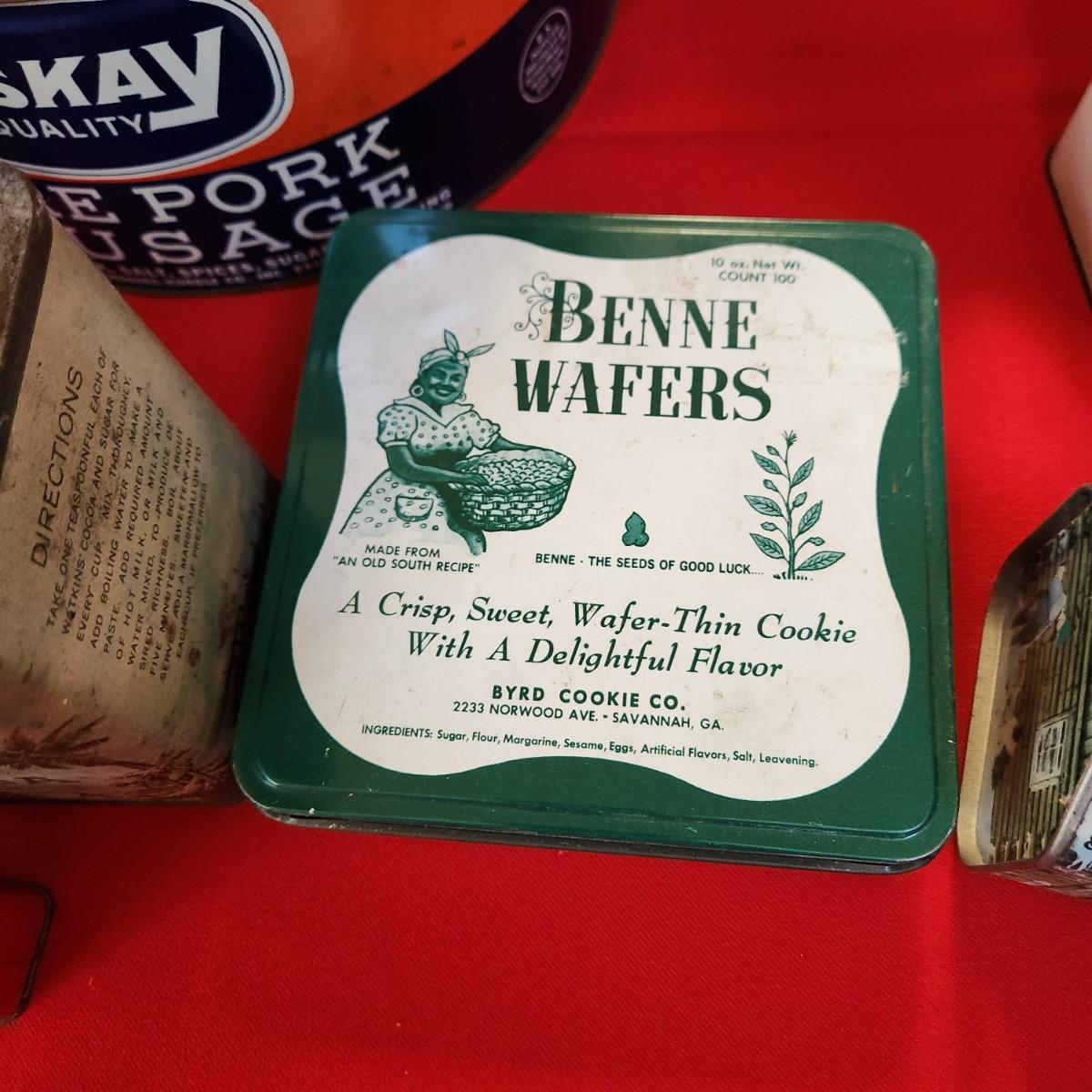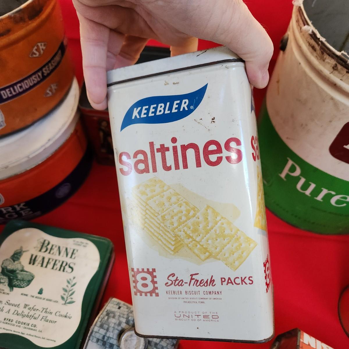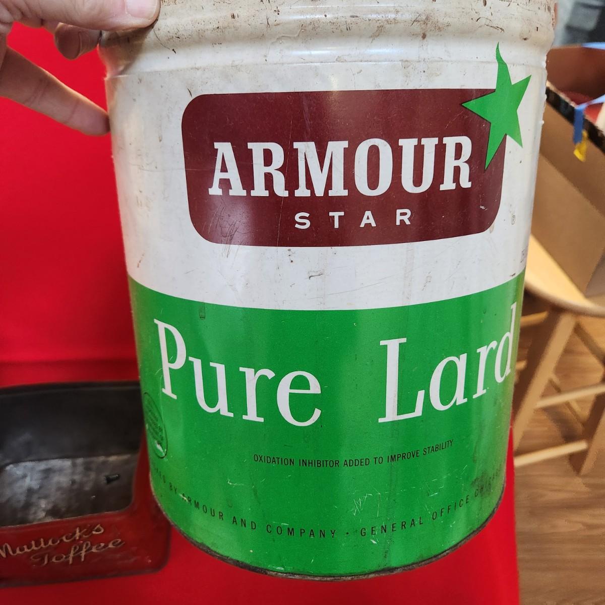 Collection of Tin Cans Esskay Meats Armour Lard Watkins Cocoa , Banquet Tea , McCormick Spices