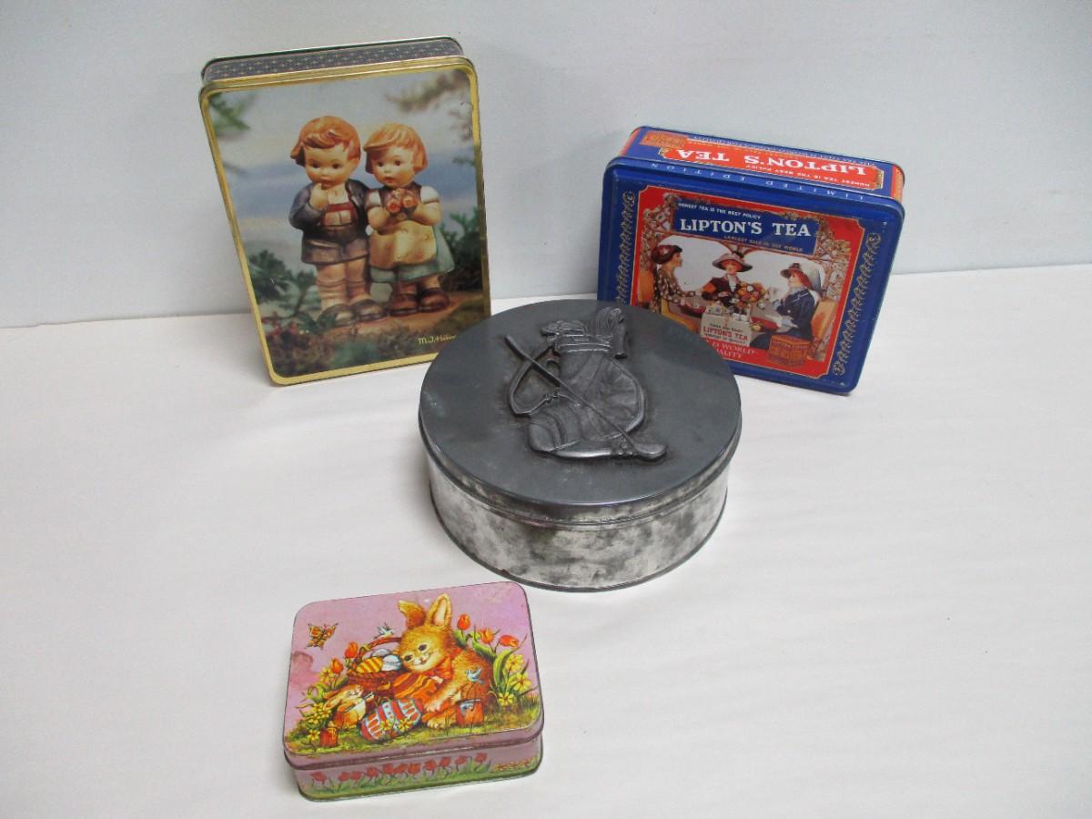 Collection Of Tins - Hummel - Lipton's Tea - Golf Lid