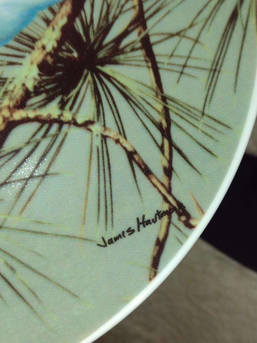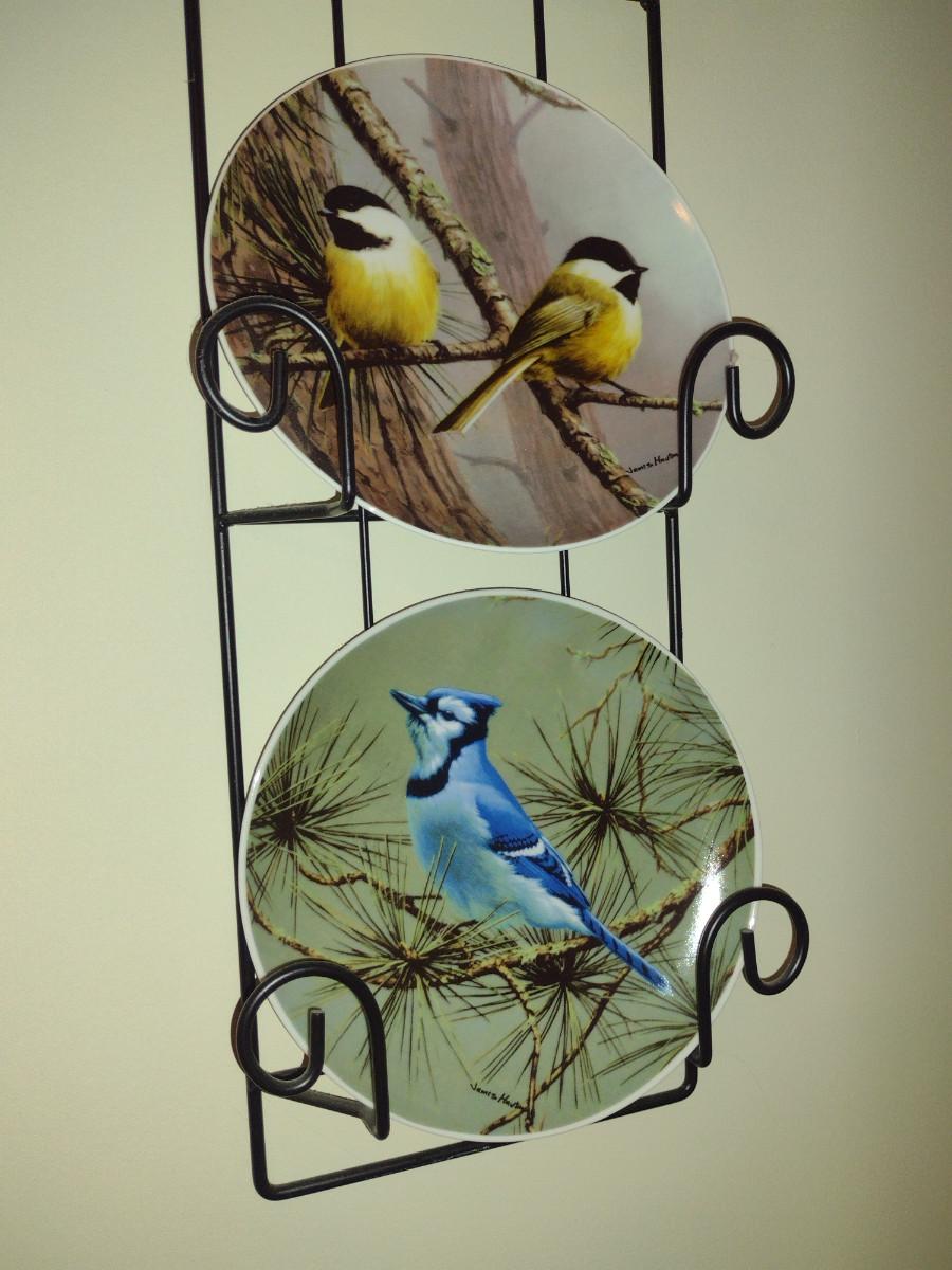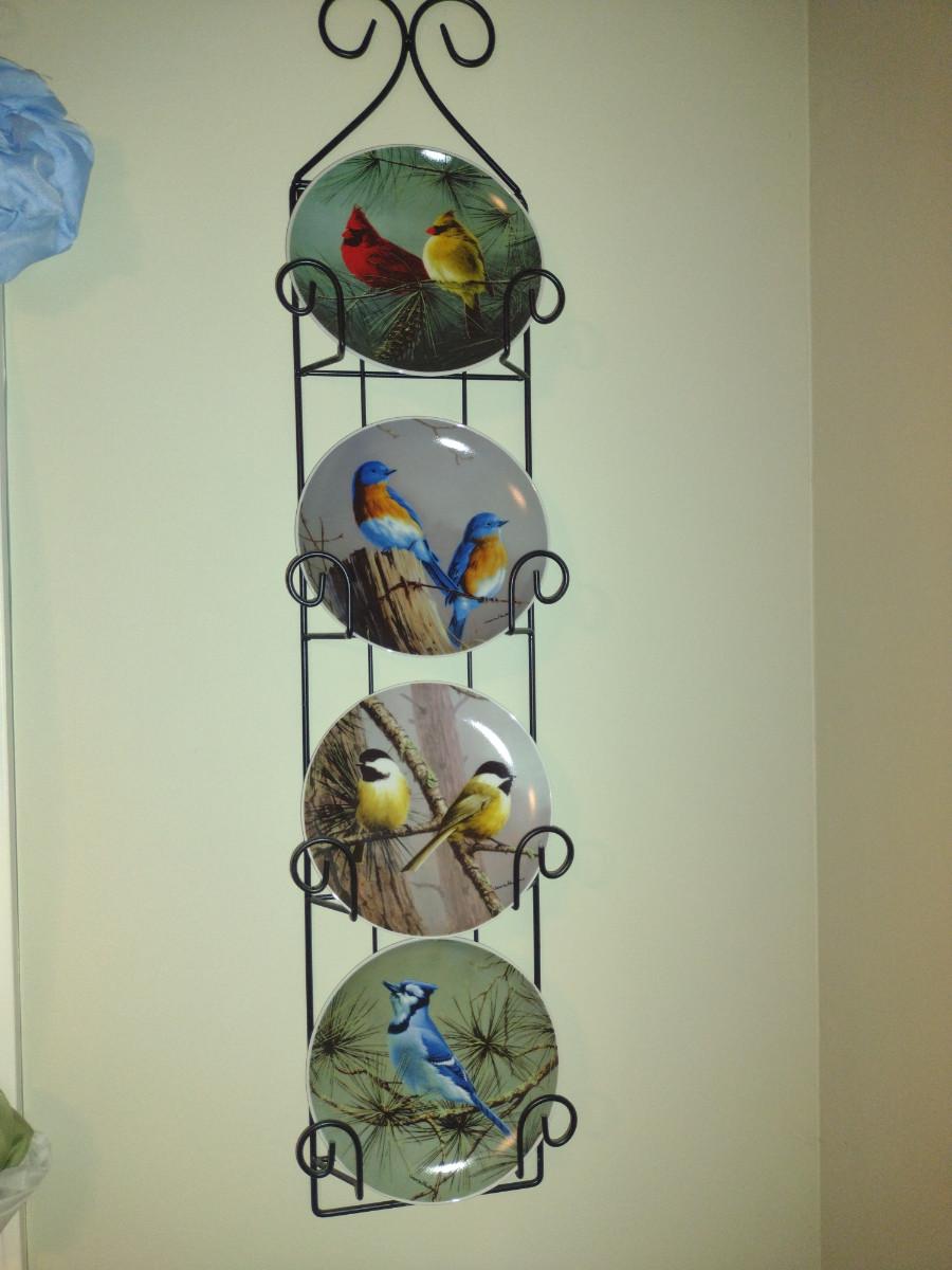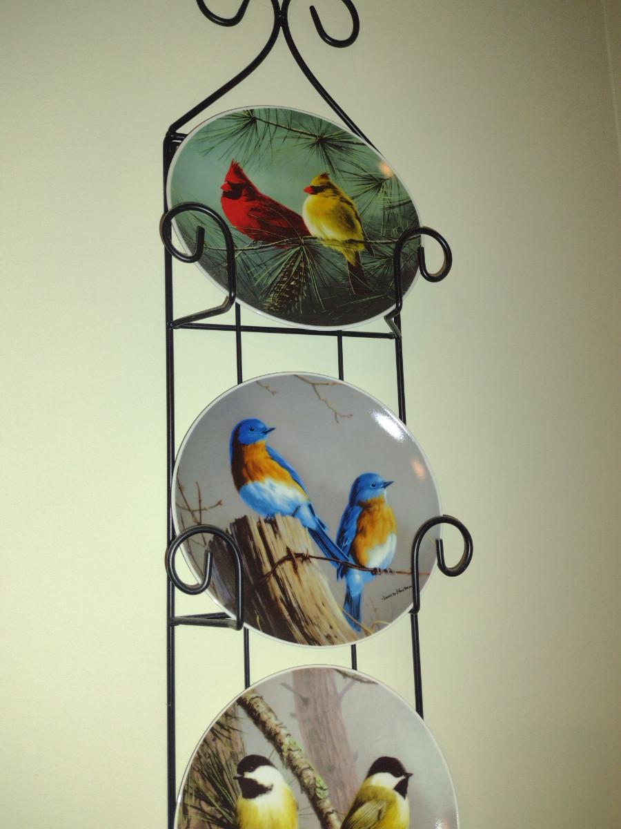 Collection of Tone World Hautman Brothers Bird Design Plates with Metal Wall Hanging Rack