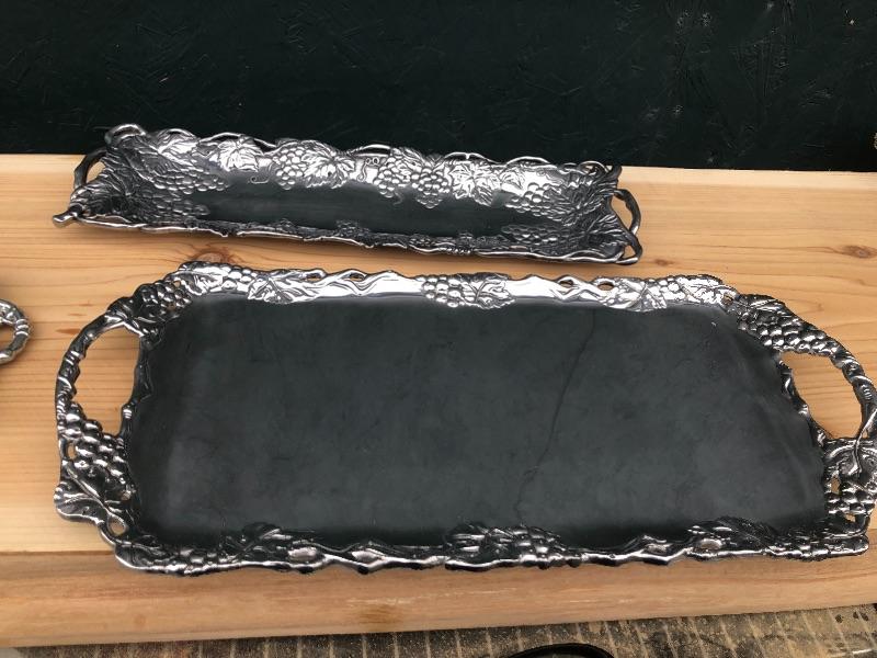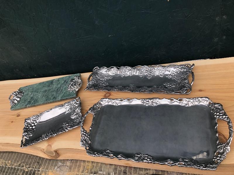 Trays from 1996. Includes 3 metal trays and one granite tray. Beautiful set, still in original boxes!