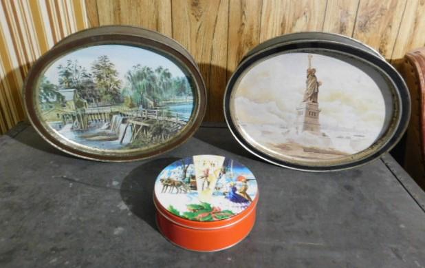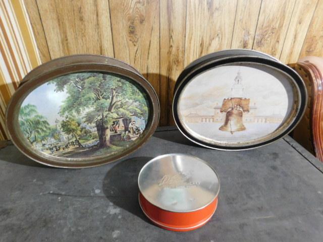 Collection of Two Double Sided Vintage Tins plus a Bonus Tin