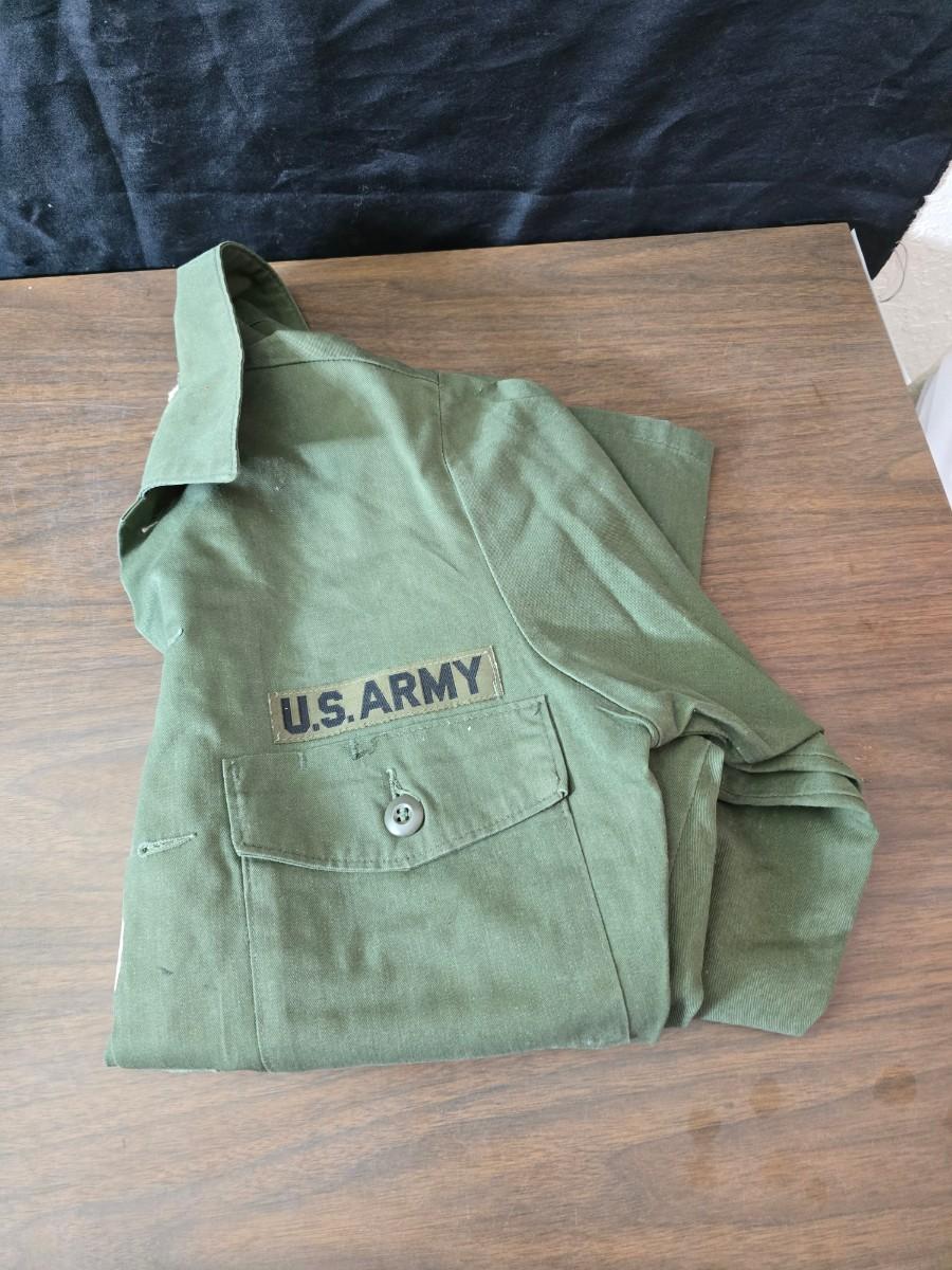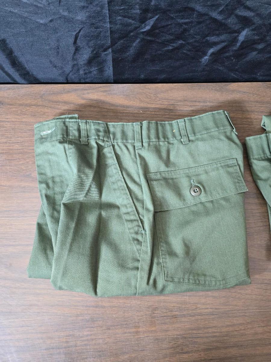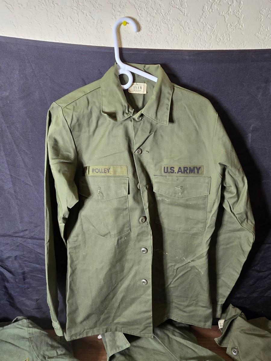 Collection of US Army OG-107 or OG-507 utility uniforms, including shirts and trousers. - See photos for size
