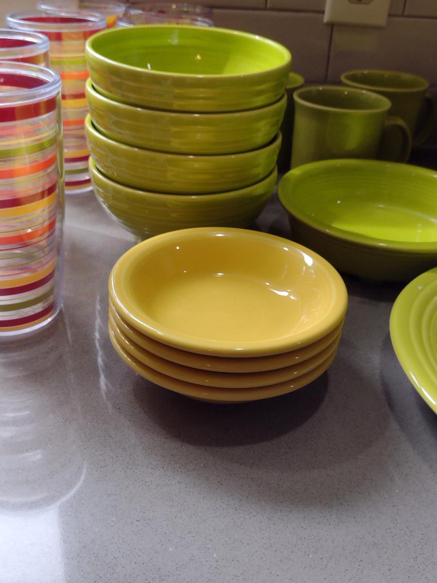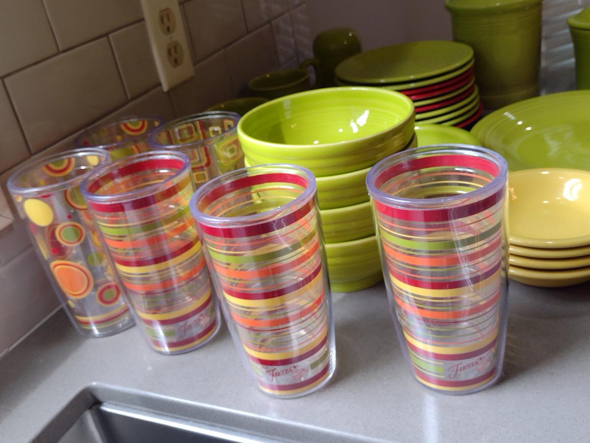 Collection of Various Fiesta Ware. All items in used, but good condition. Tumblers are Tervis brand and are plastic.