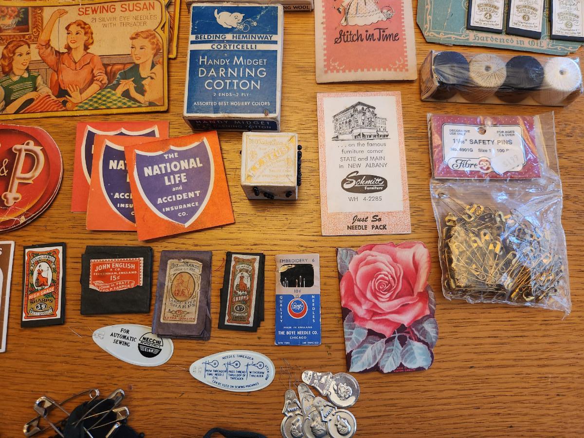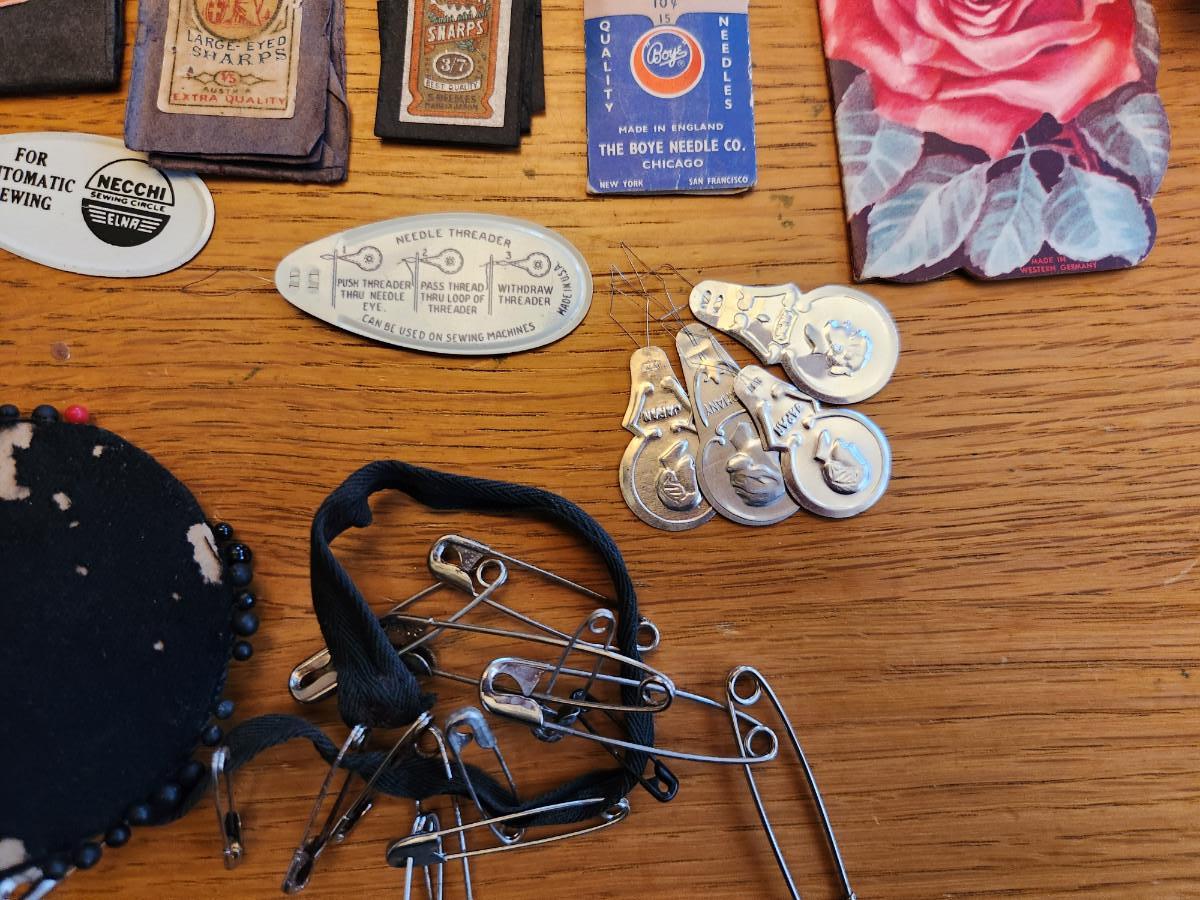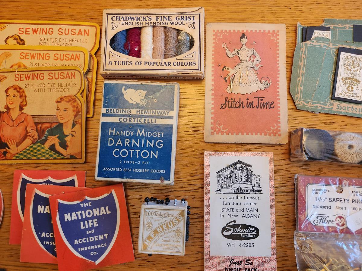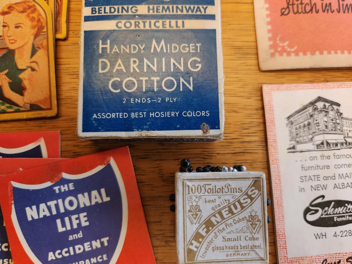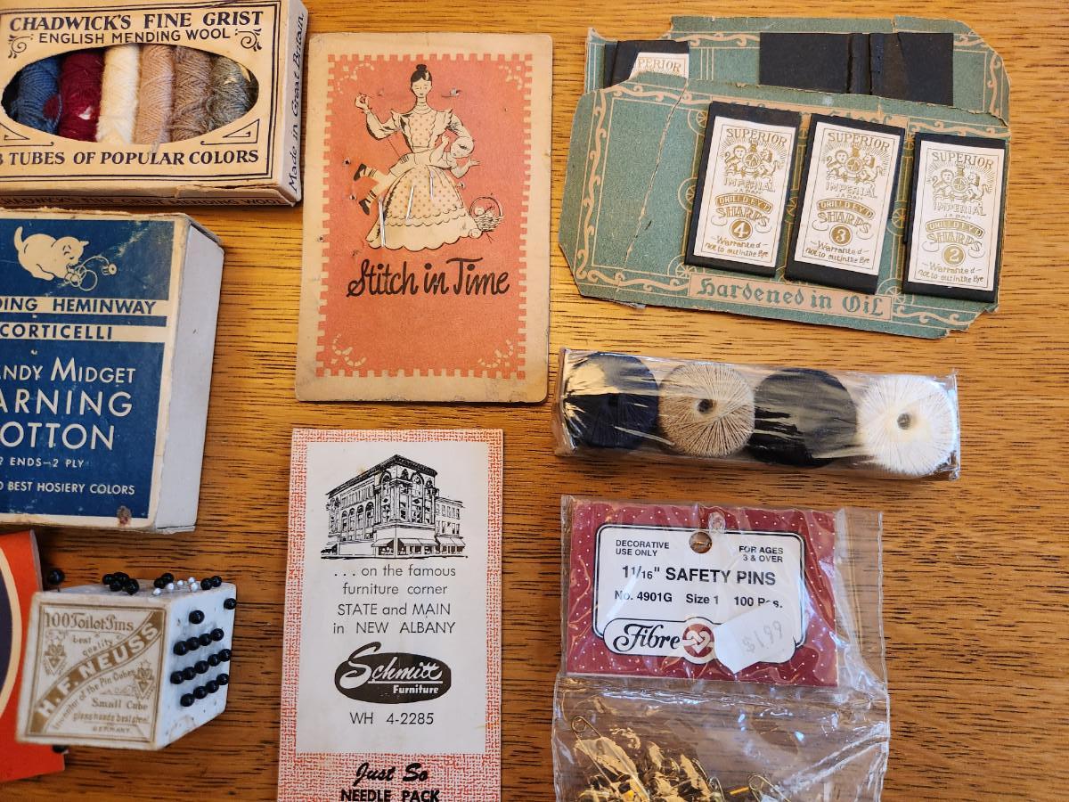 This auction lot is for a Collection of Various Sewing Notions. The lot includes pin packs, needle threaders, needle carriers, various threads and the like. Some nice advertising pieces in this selection, Plus the two pin cushions.
