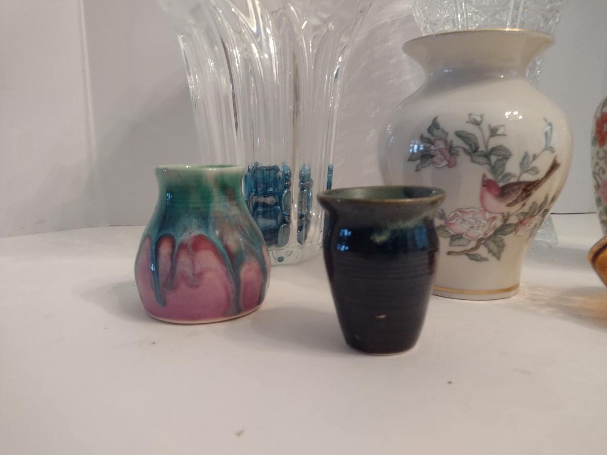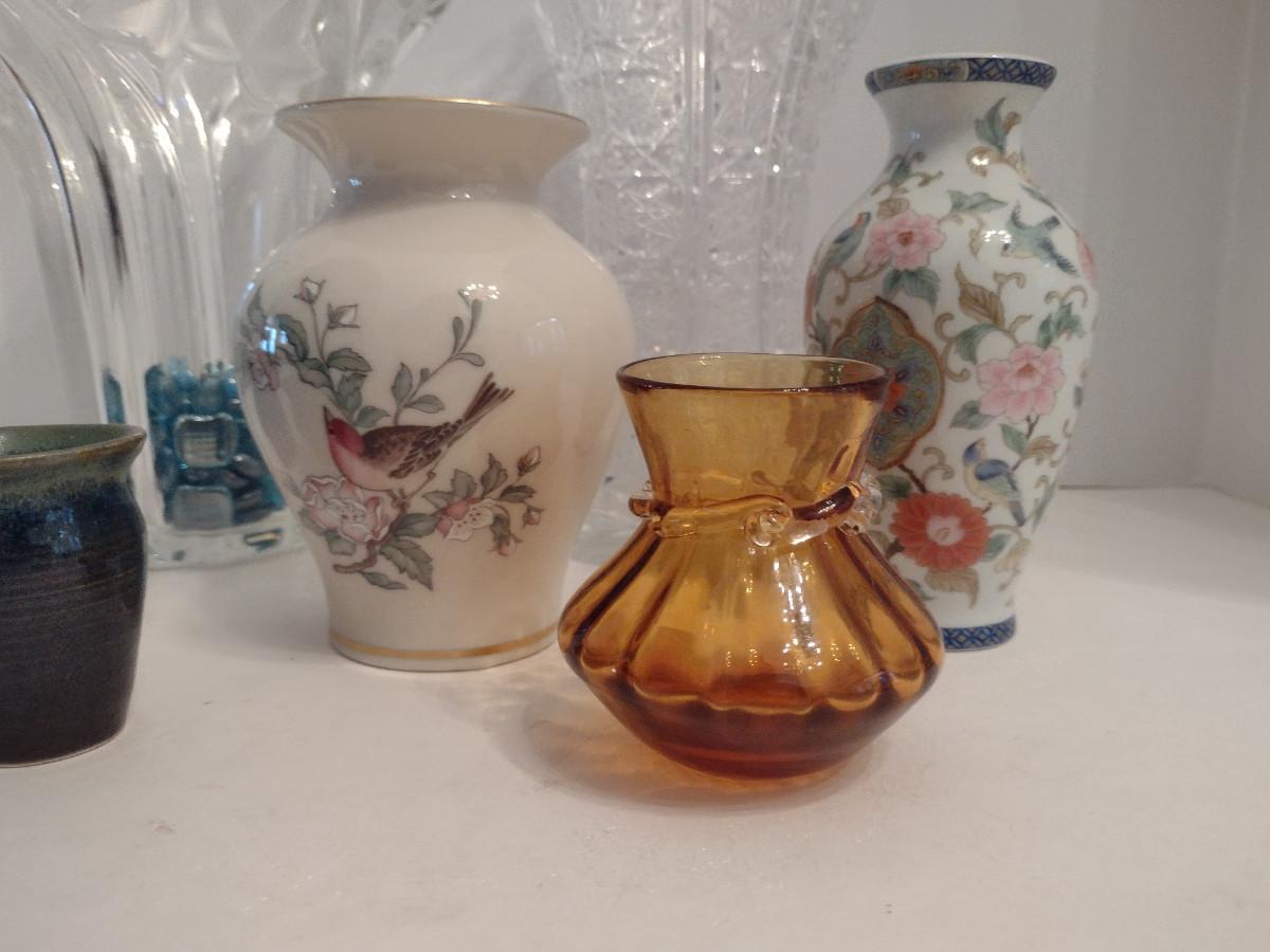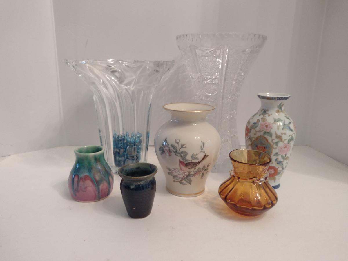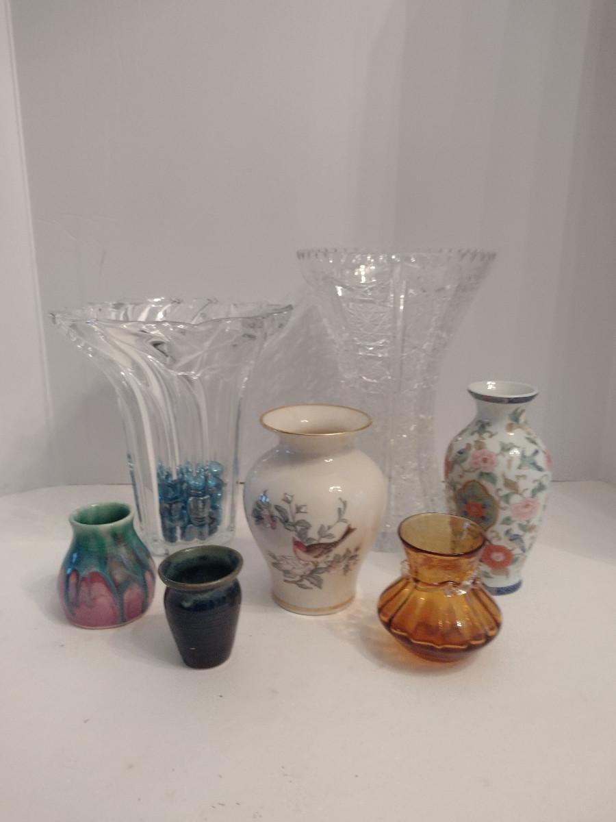 Collection of Vases- Assorted Makers. Large crystal vase has chip on base- please see all pictures.