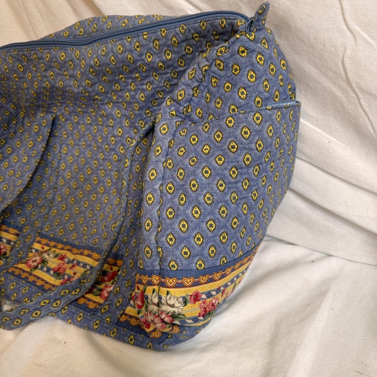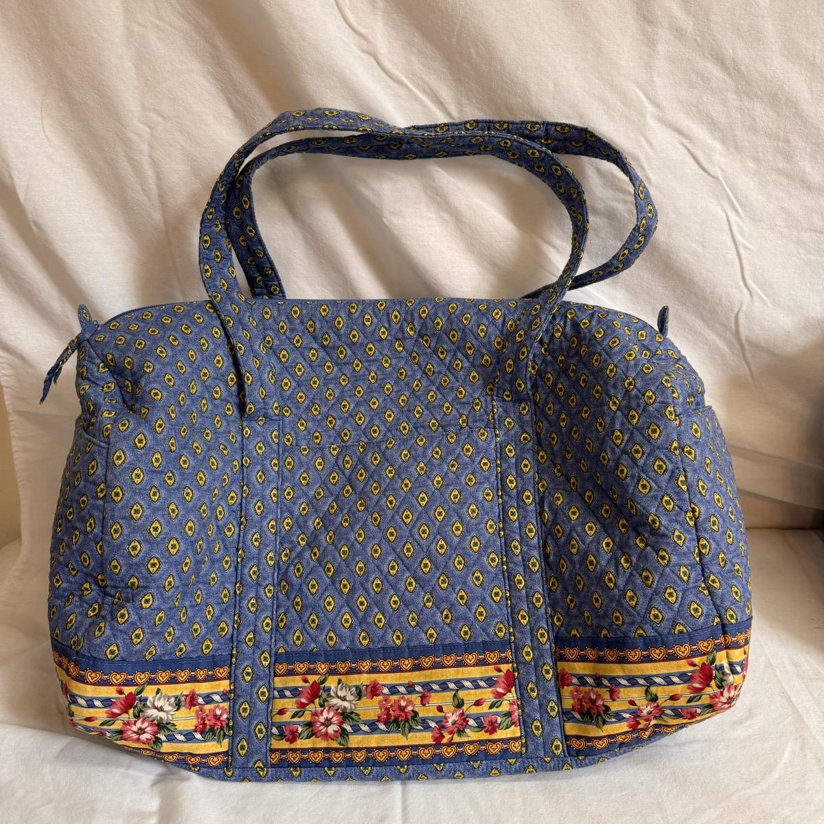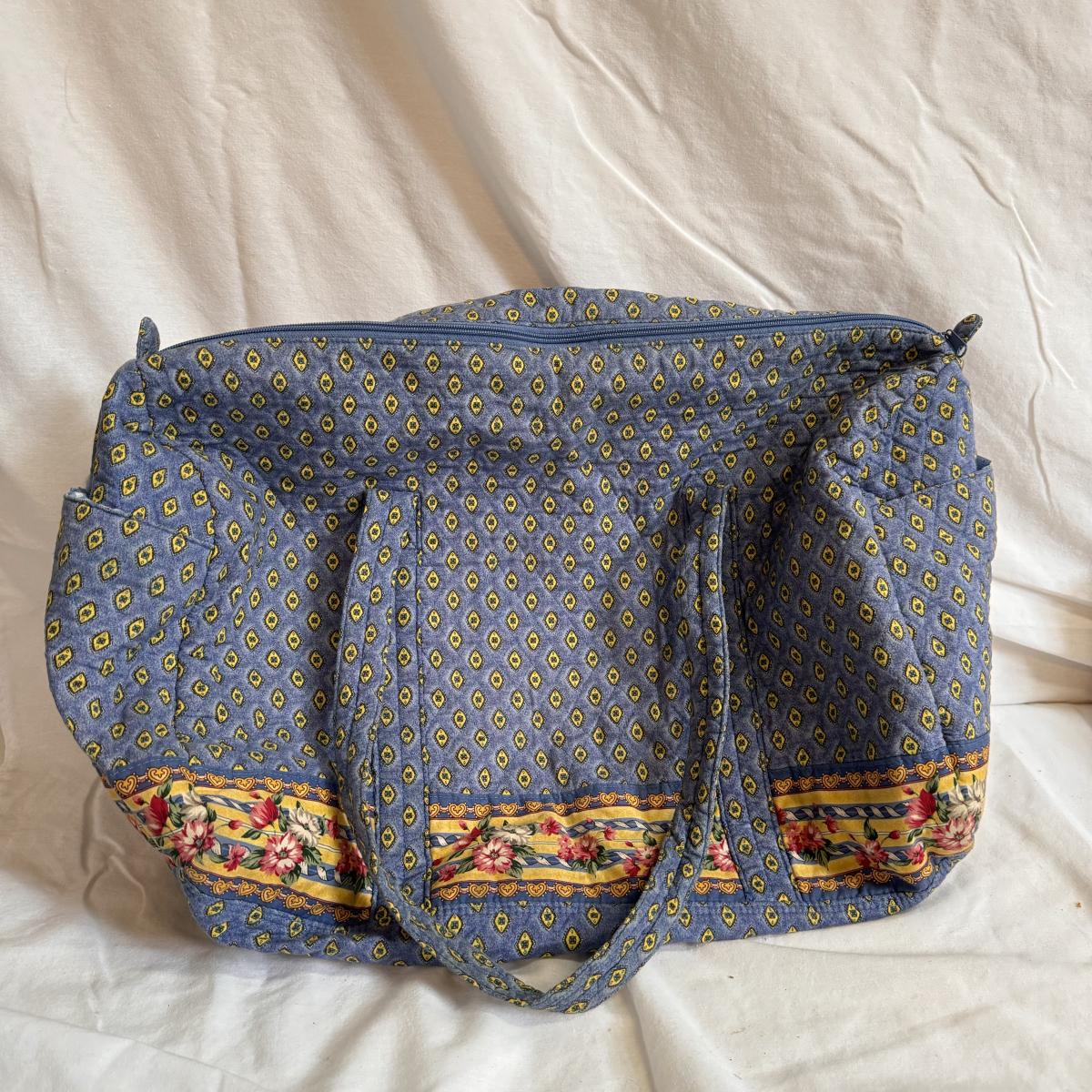 This lot includes sixteen Vera Bradley pieces, including totes, wallets, travel duffles, lunchbox, and a reusable grocery bag. One of the smaller bags has a small stain - see picture included. The largest totes are the first two pictured individually - they measure 28” x 17” x 29”H. Shipping available.