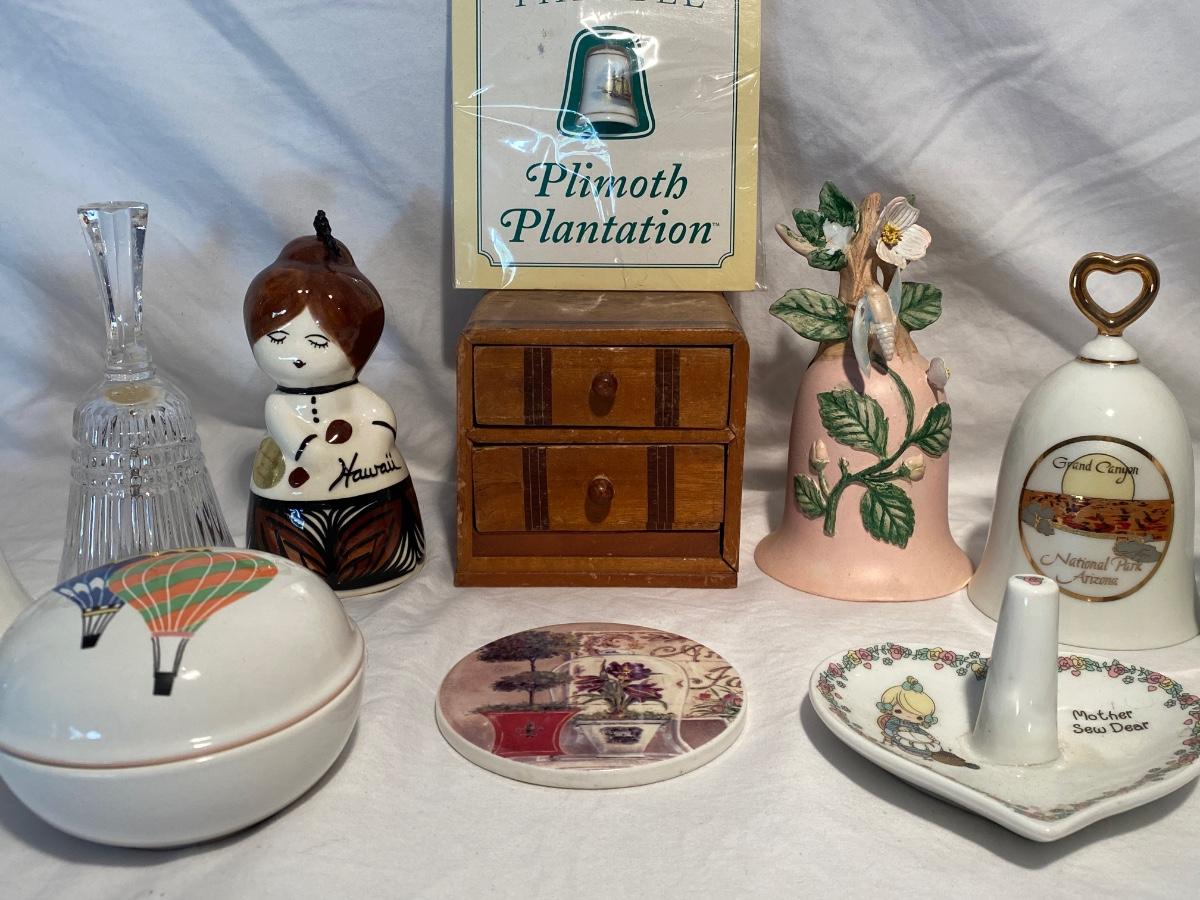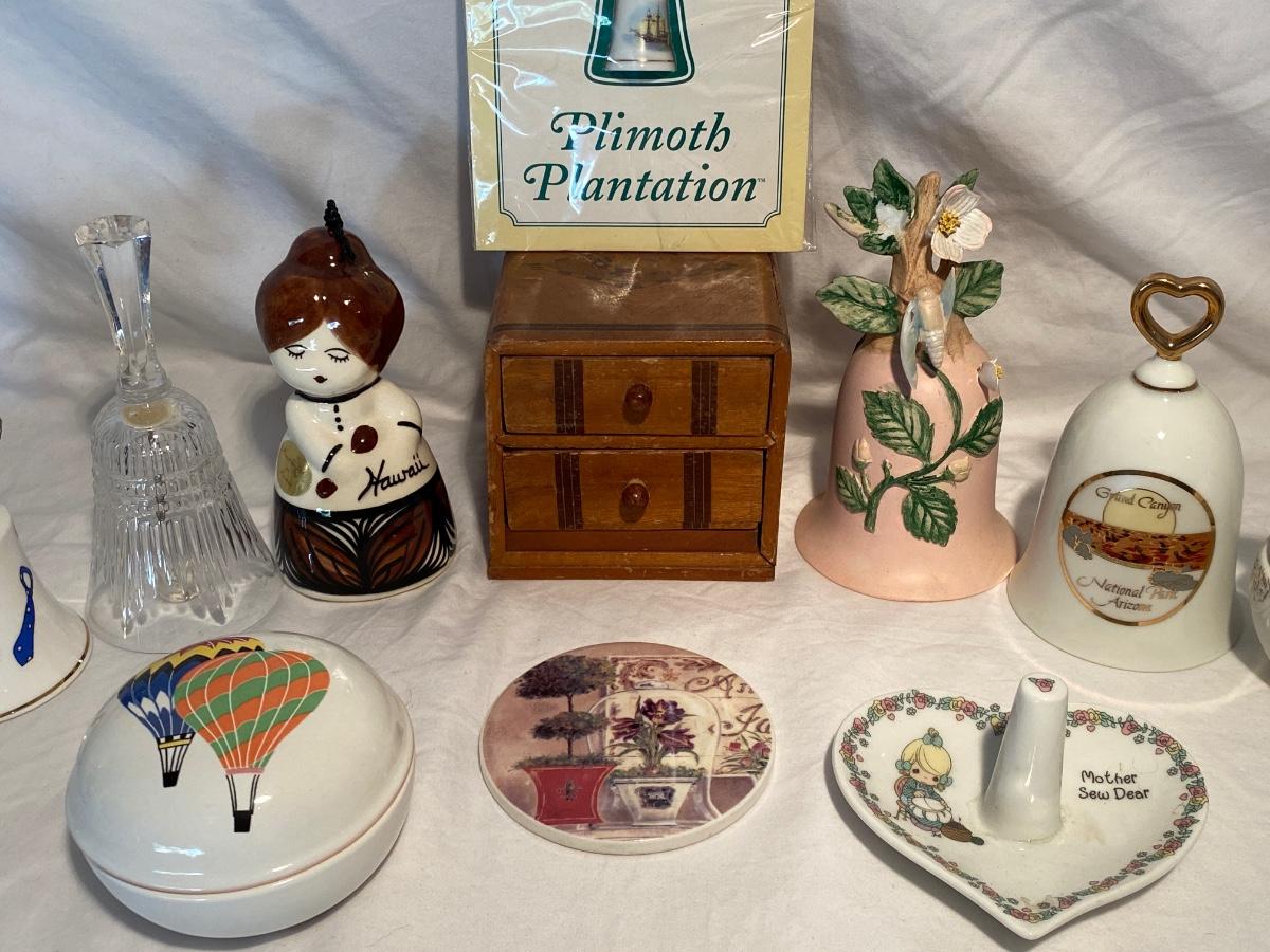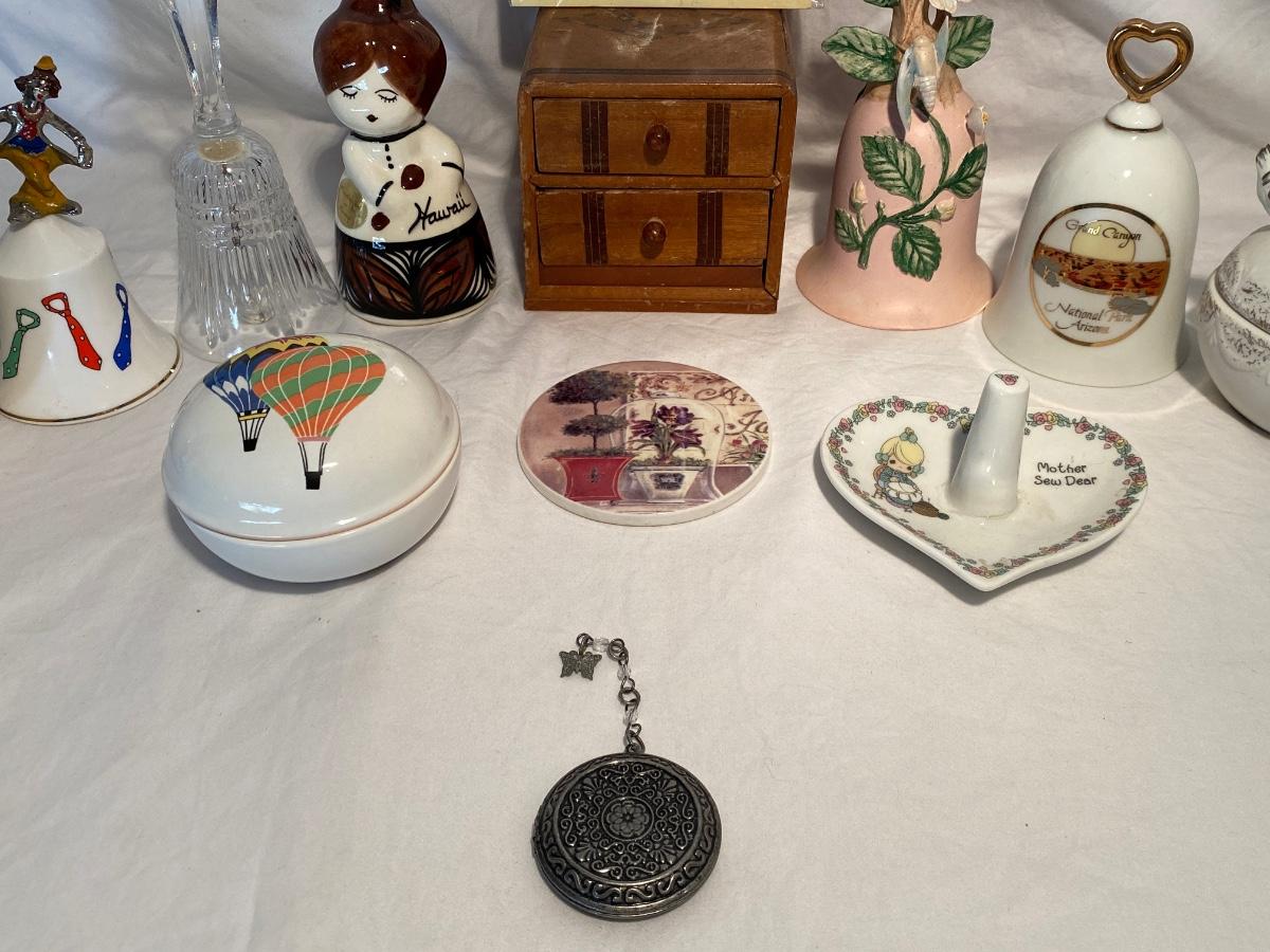Collection of vintage bells and trinkets. Preowned and sold as is