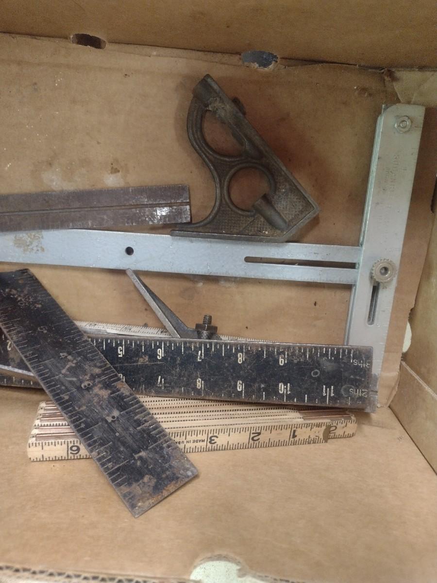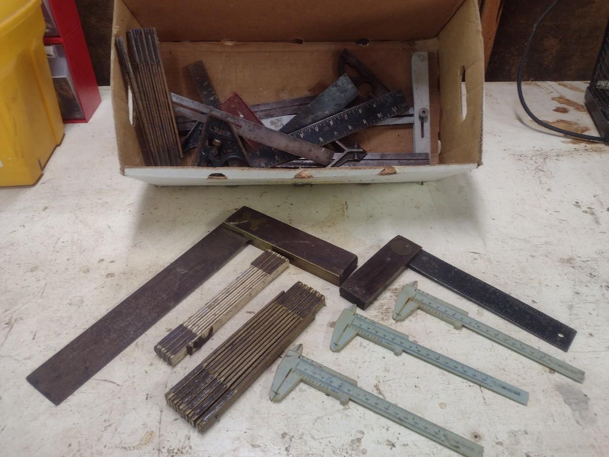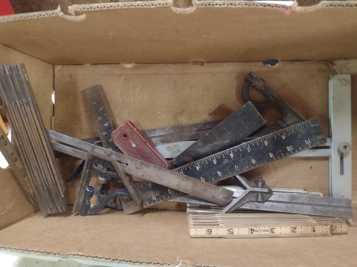 Collection of Vintage Carpenter's Measuring Tools and Squares