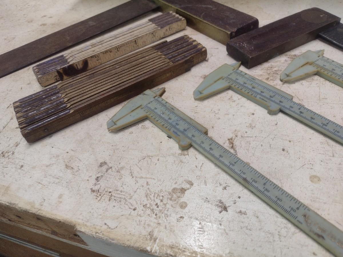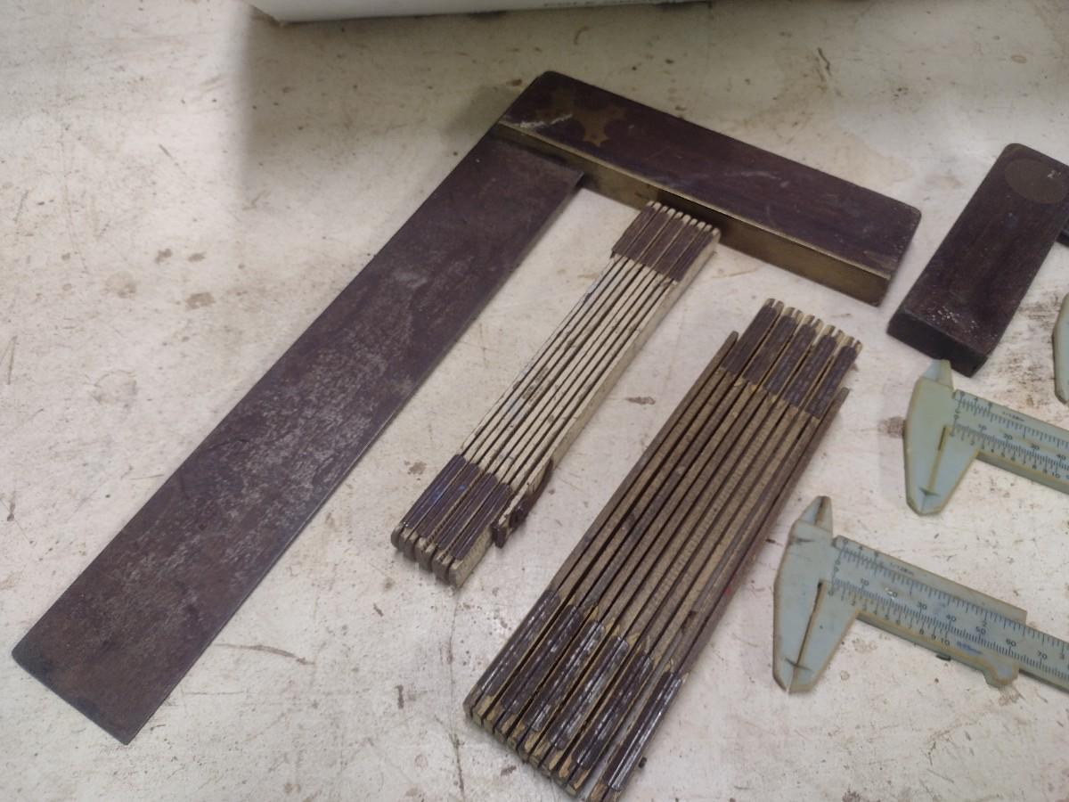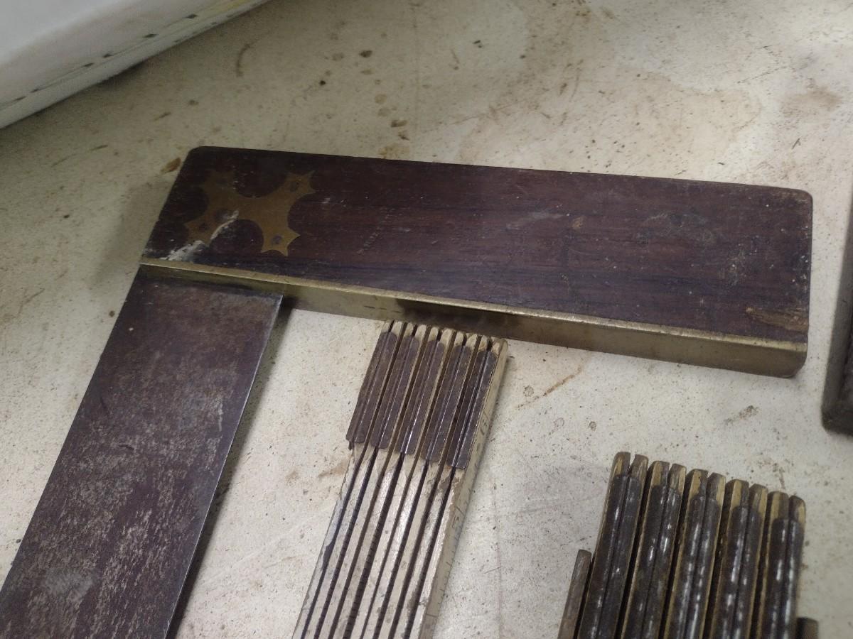 Collection of Vintage Carpenter's Measuring Tools and Squares