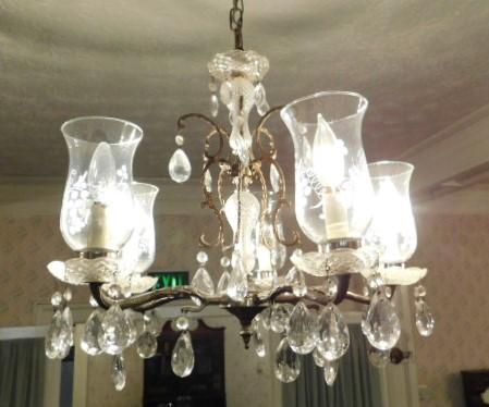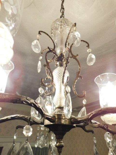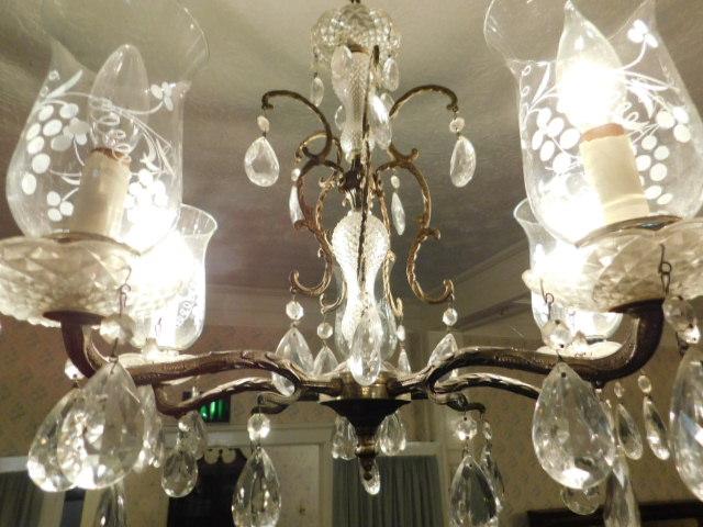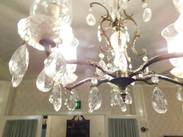 Collection of 3 Vintage Chandeliers with Twist Metal Twig Design and Prism Accents (Parlor Room) please bring ladder and tools to safely remove from ceilings
