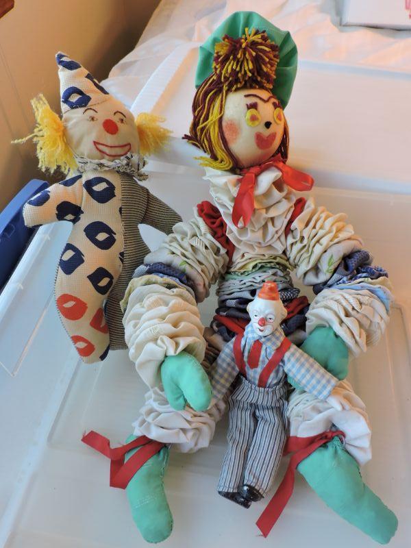 Three clown dolls. **Please read Terms and Conditions before placing a bid. Pick up is Sunday, September 15, 2019 from 11am to 4pm and Tuesday, September 17 from 4pm-7pm in Sicklerville. All sales are final. All sales are as is, where is. Please review all photos. Any props included in photos are not included in listing. All measurements are approximate.