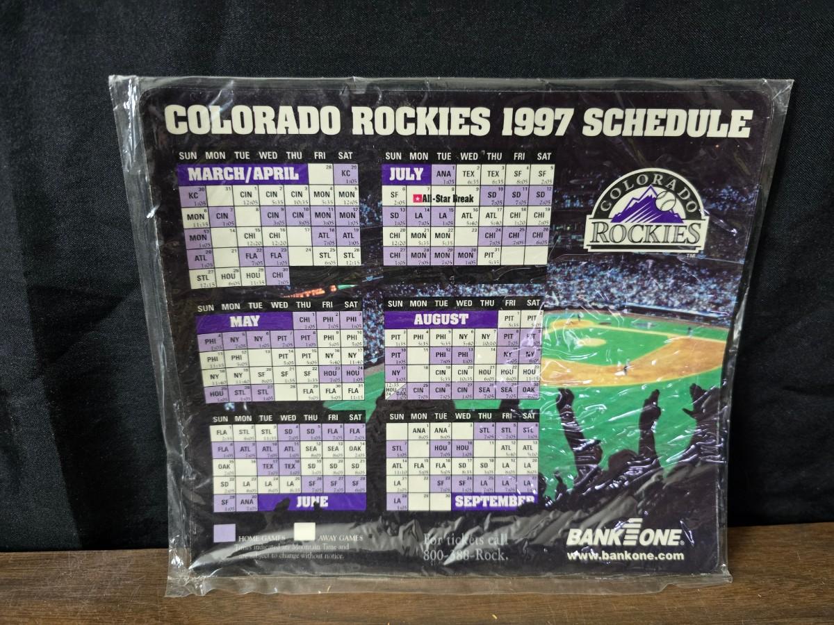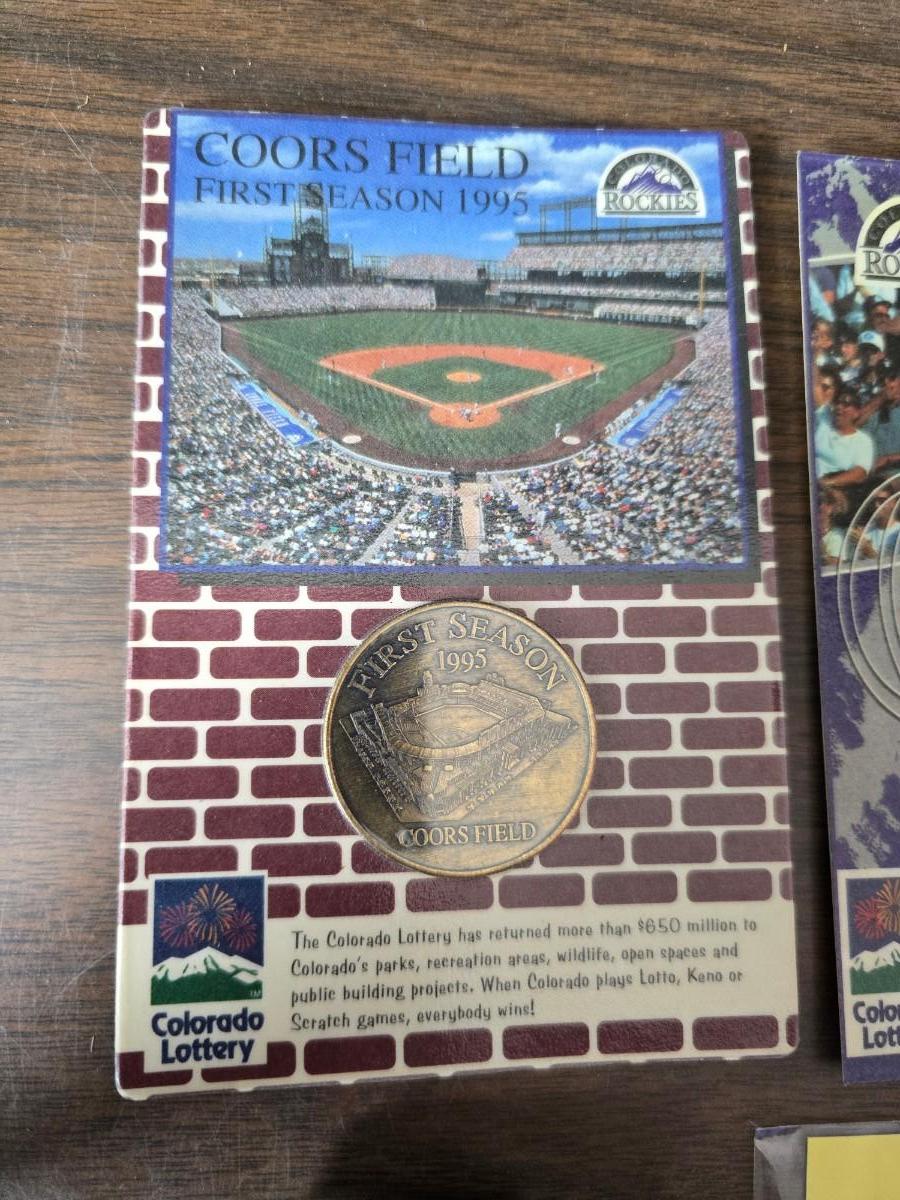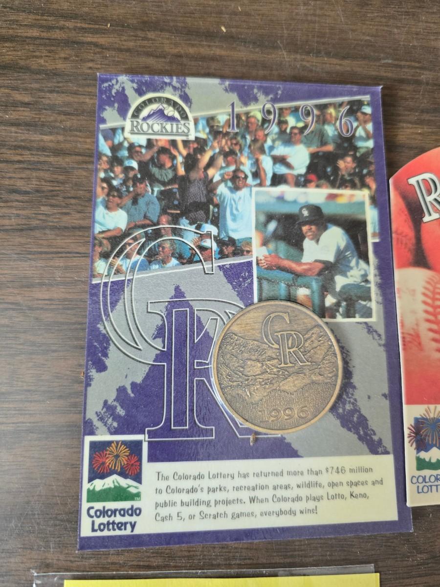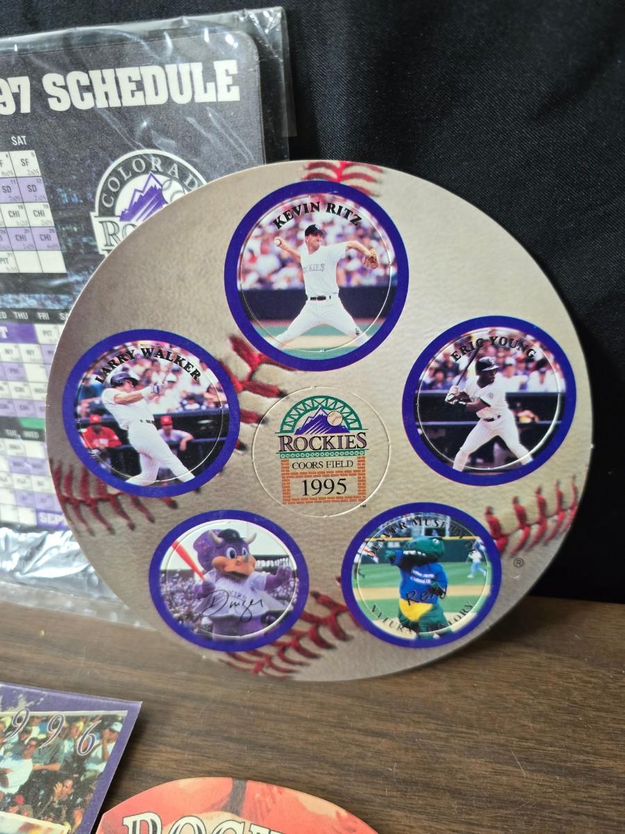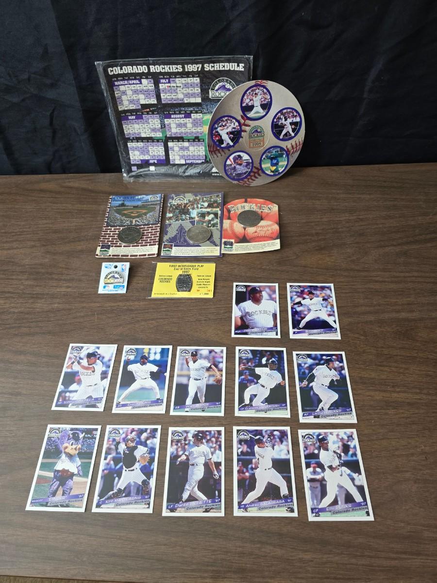 Collection of vintage Colorado Rockies memorabilia - Baseball cards - Pogs - coins- calendars and more