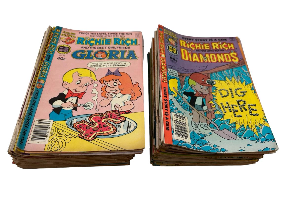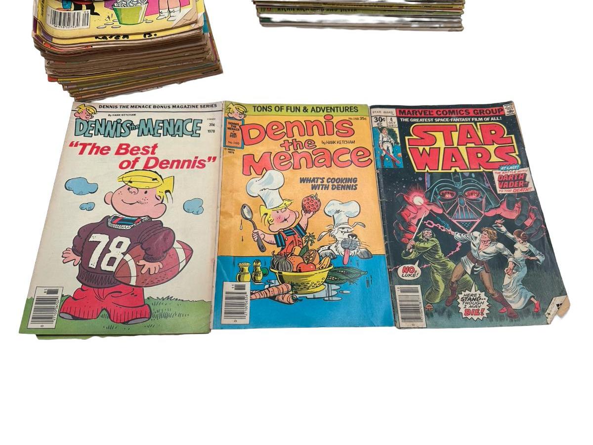 About 70 comic books. Primarily Richie Rich, a few of Dennis the Menace and 1 Star Wars. See condition in photos.