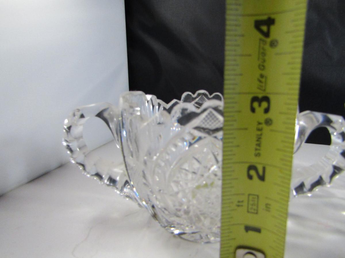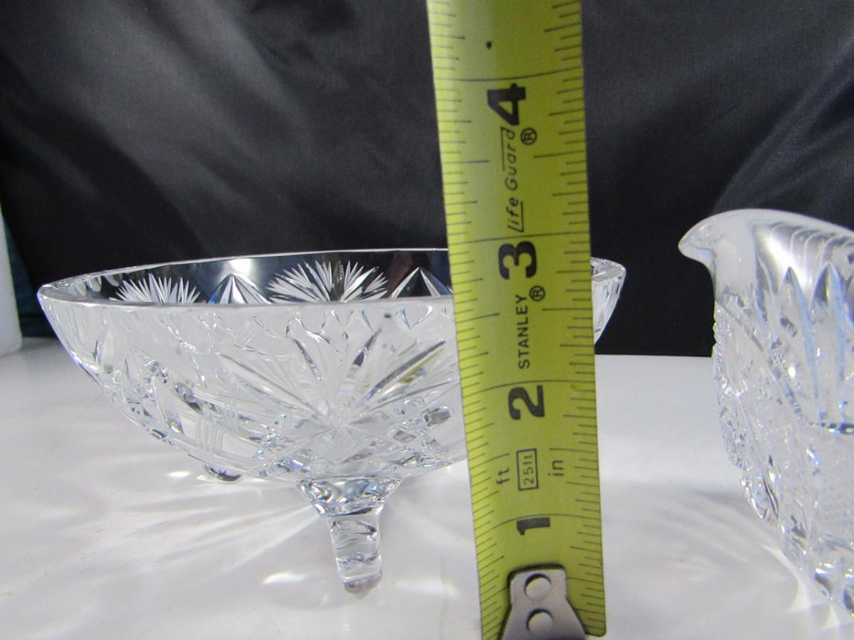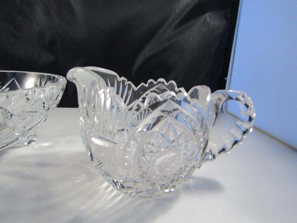 Collection of Vintage Cut Crystal Serveware. Creamer, sugar bowl. and additional footed bowl. Items may have some chipping.