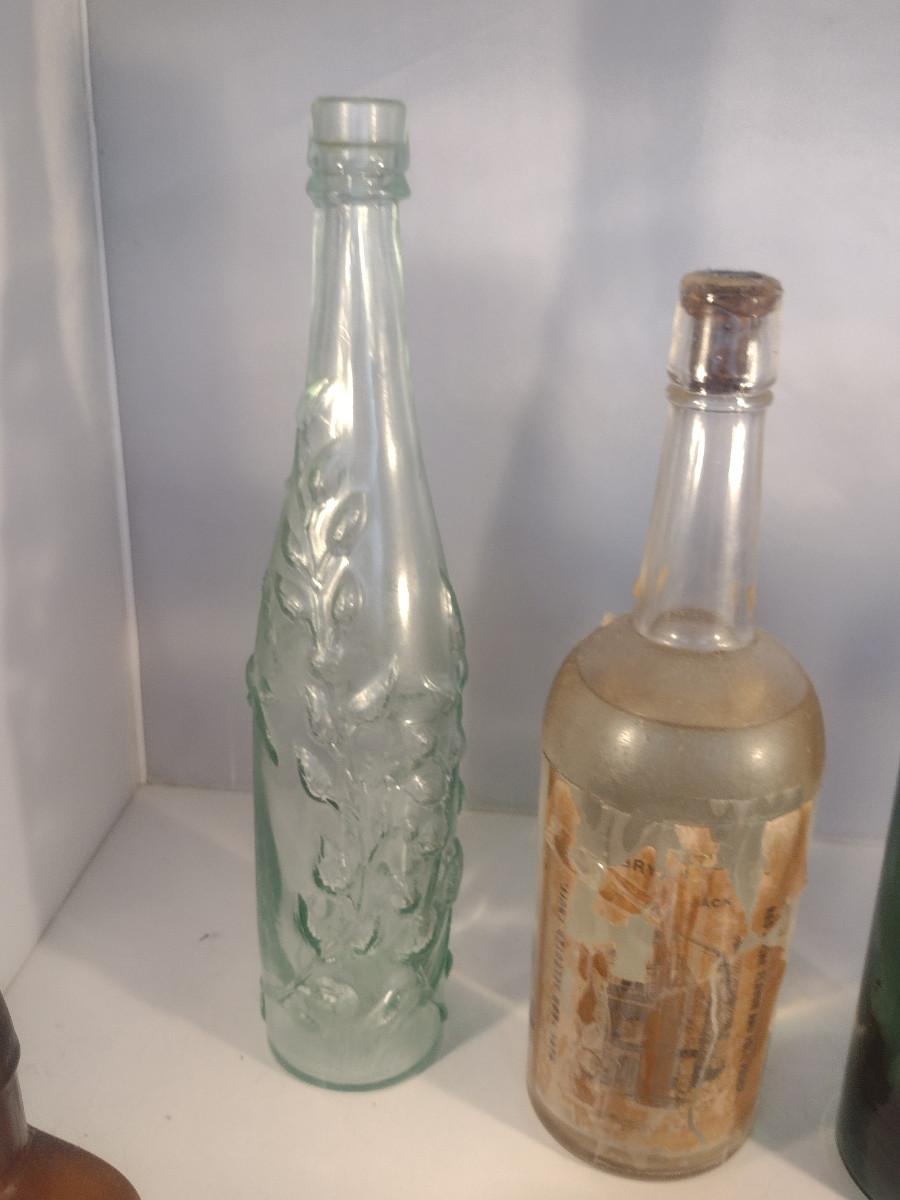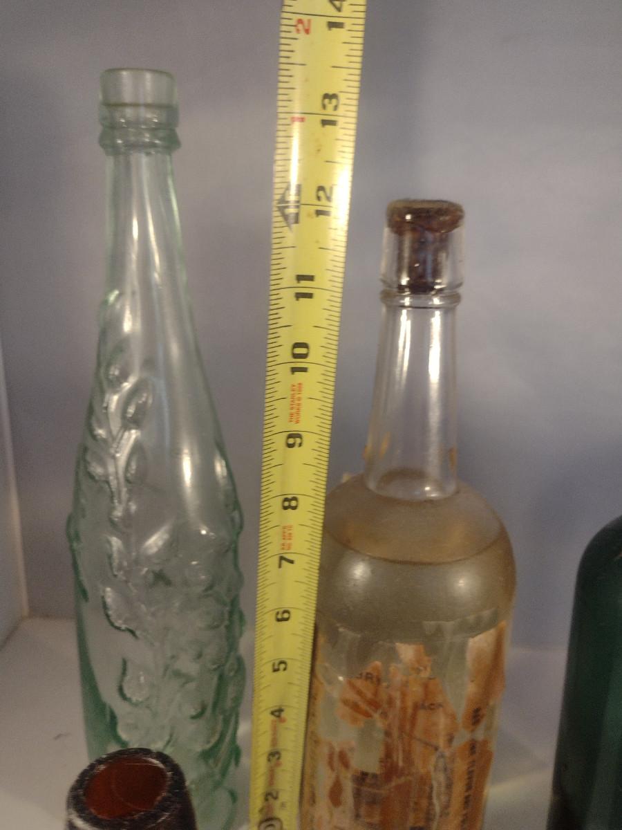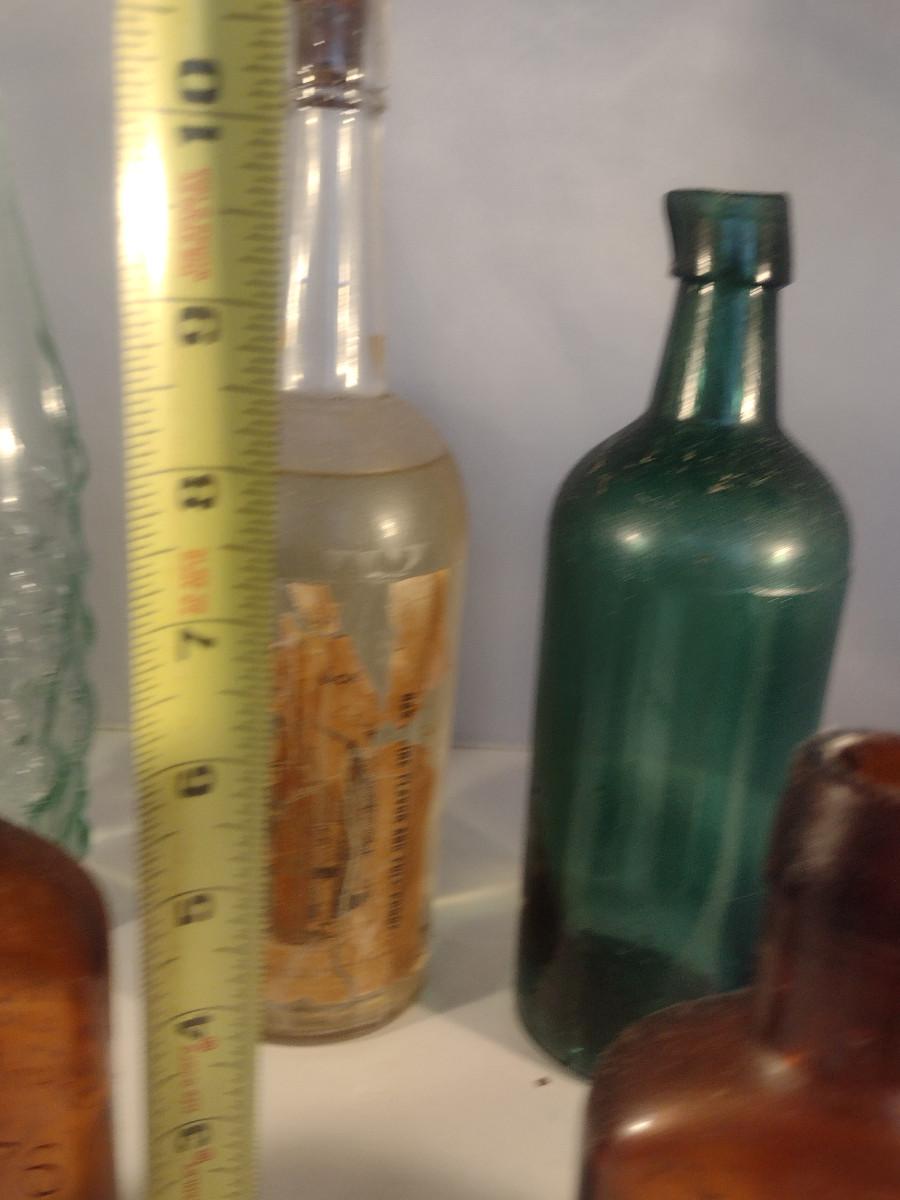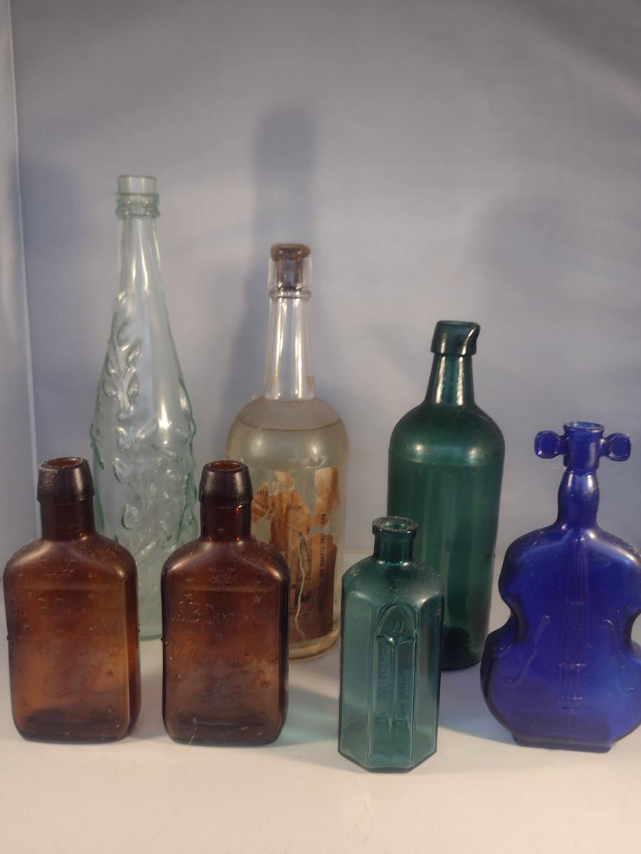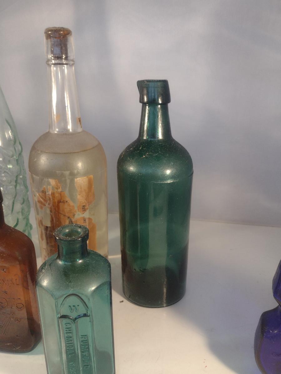 Collection of Vintage Glass Bottles- Clear, Blue, Green, and Amber