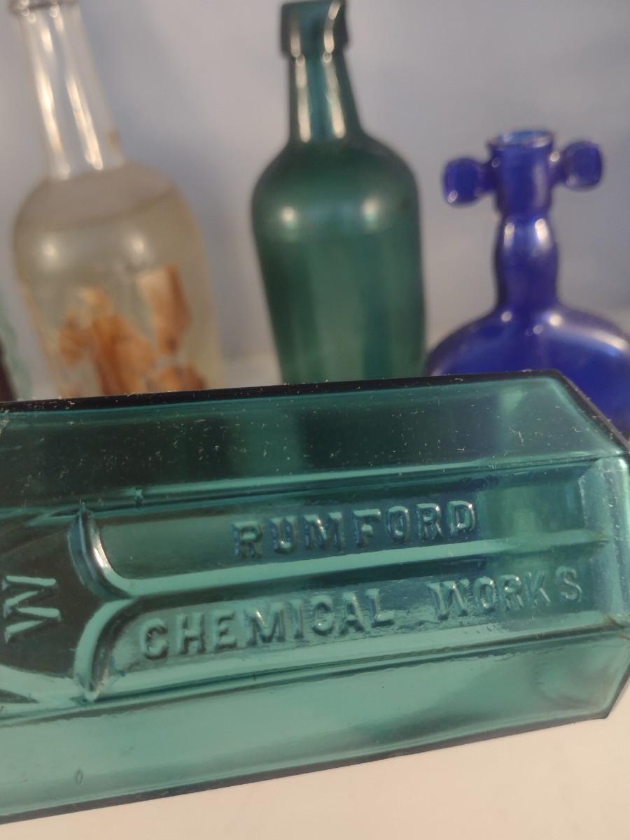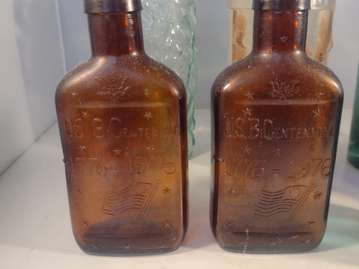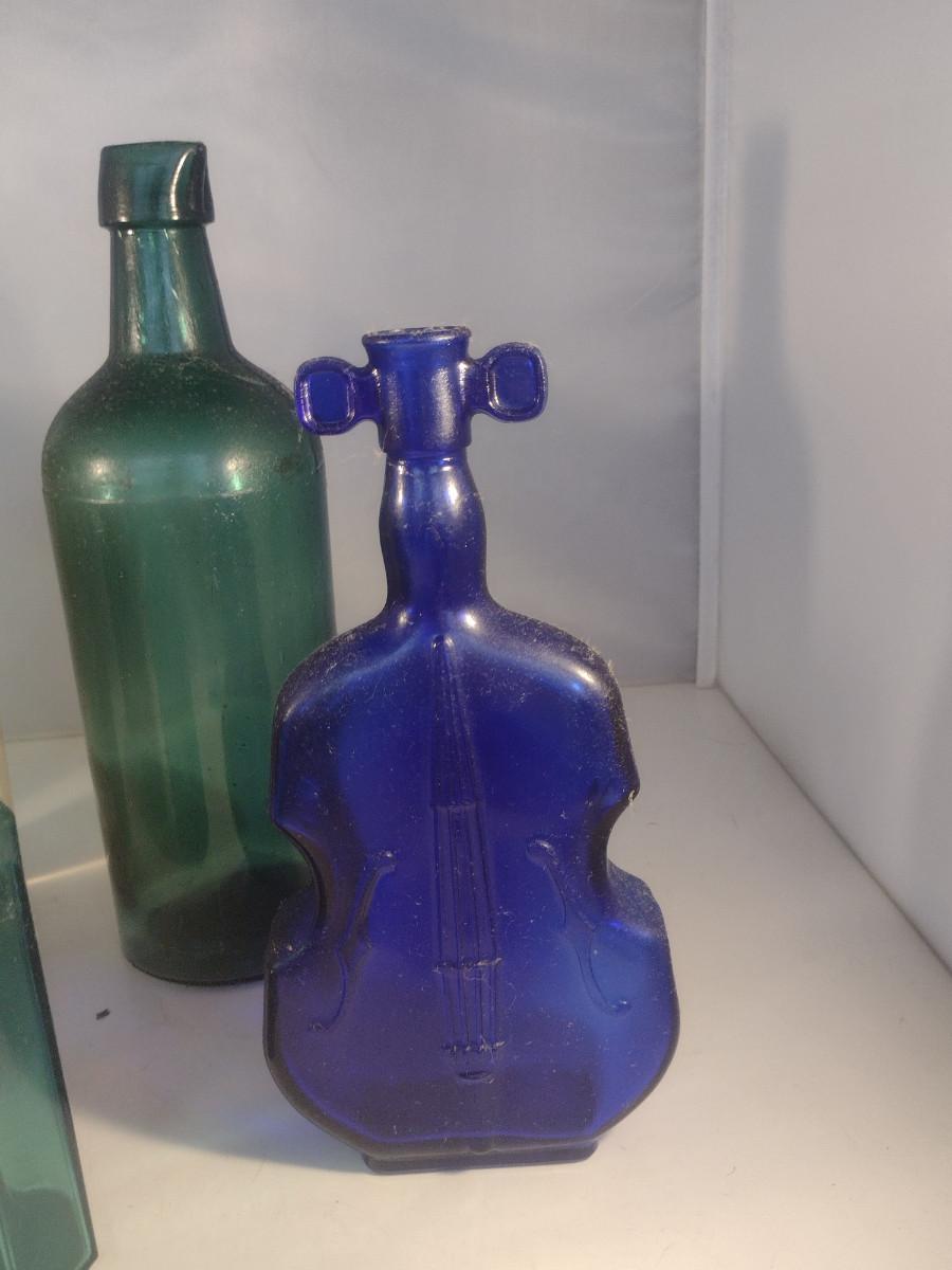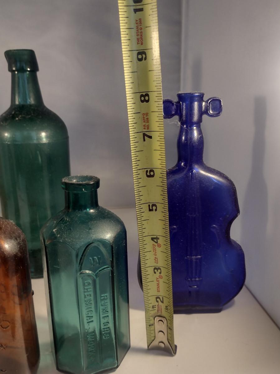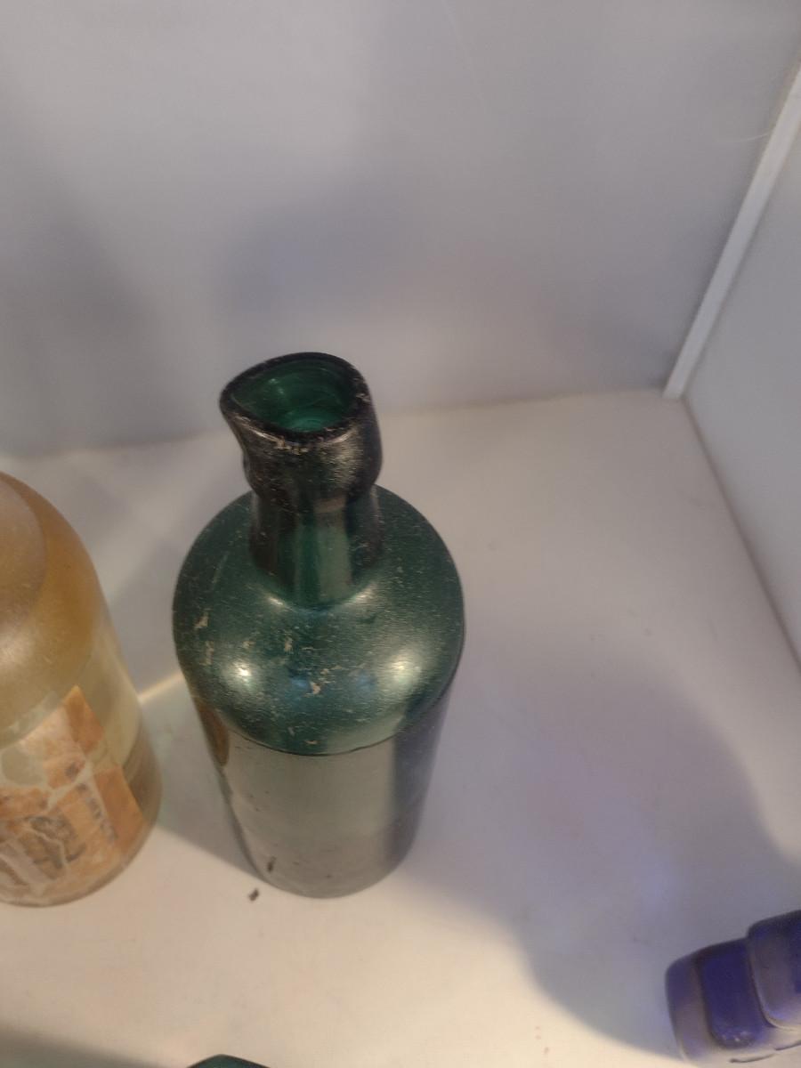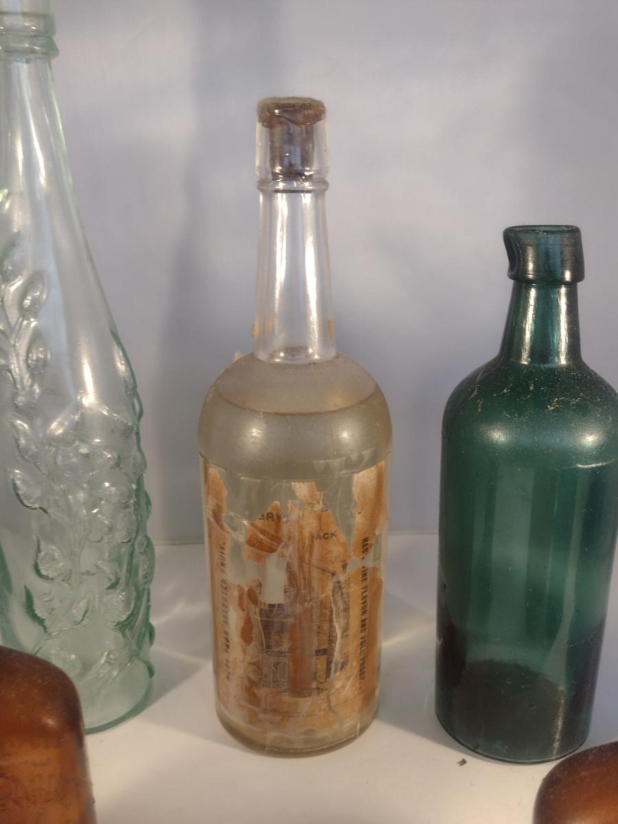 Collection of Vintage Glass Bottles- Clear, Blue, Green, and Amber