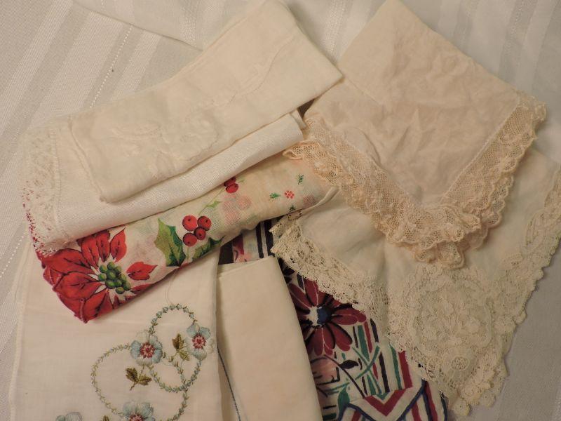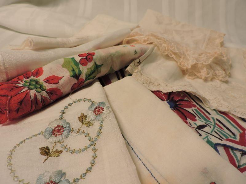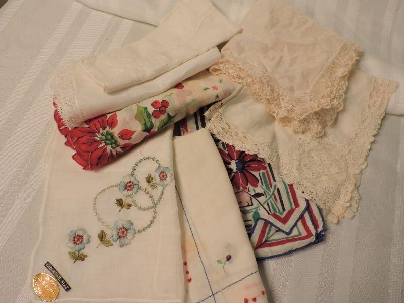 Collection of vintage hankies and napkins. **Please read Terms and Conditions before placing a bid. Pick up is Sunday, September 15, 2019 from 11am to 4pm and Tuesday, September 17 from 4pm-7pm in Sicklerville. All sales are final. All sales are as is, where is. Please review all photos. Any props included in photos are not included in listing. All measurements are approximate.