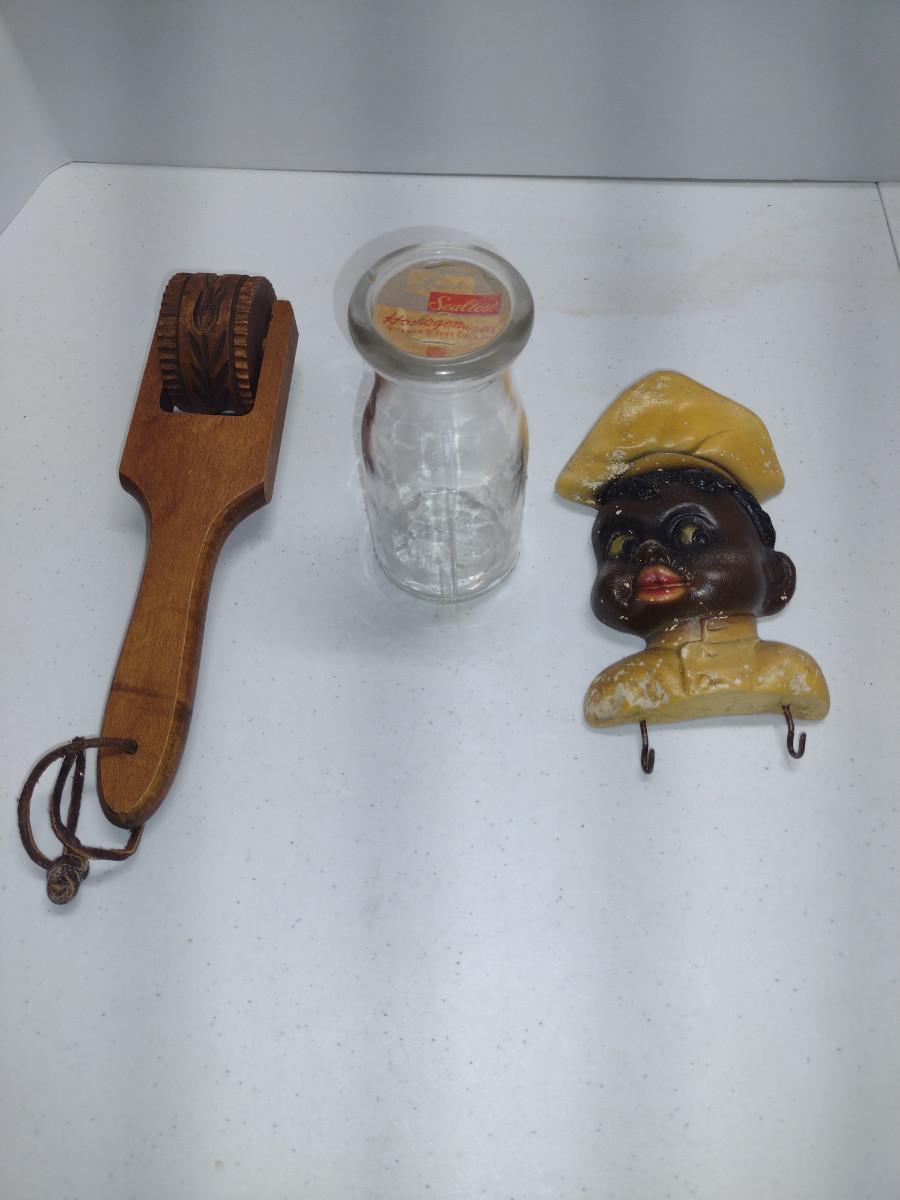 Collection of Vintage Home Decor- Chalkware Hook, Milk Bottle, Cookie Roller
