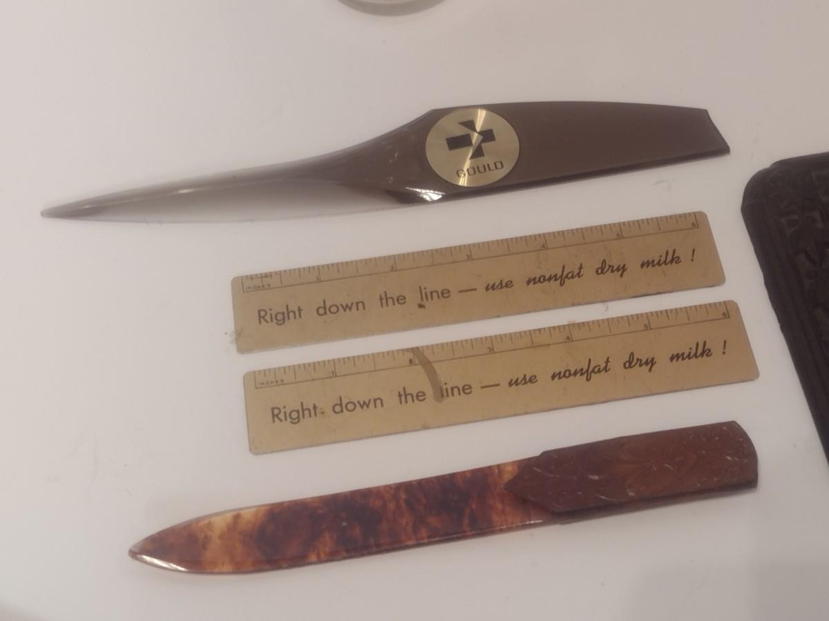 Collection of Vintage Letter Openers, Blade Sharpeners, and Pocketknives