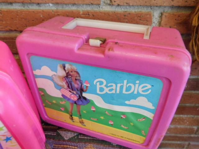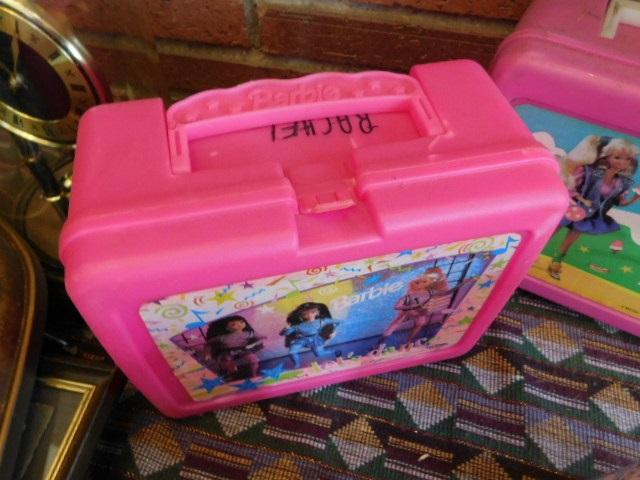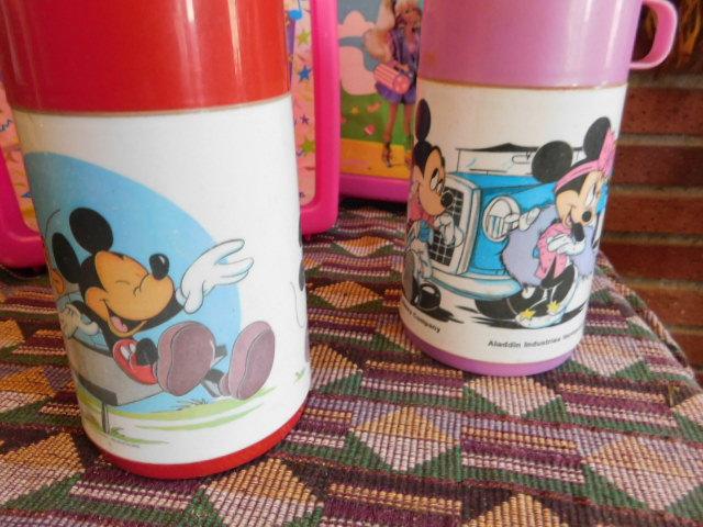 Collection of Vintage Lunch Boxes and Thermos Barbie, Batman, My Little Pony, Mickey (see all pics) condition varies and may include added stickers, pencil or markers used, cracks, or small breaks.