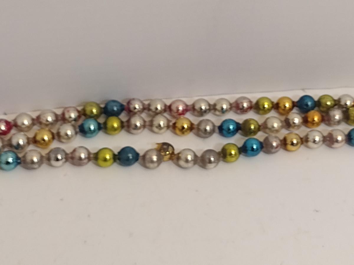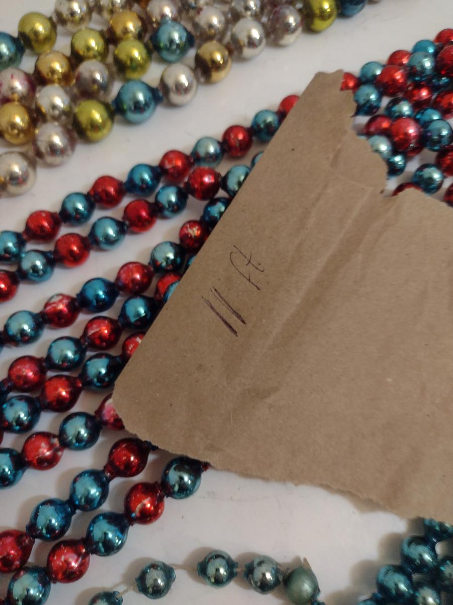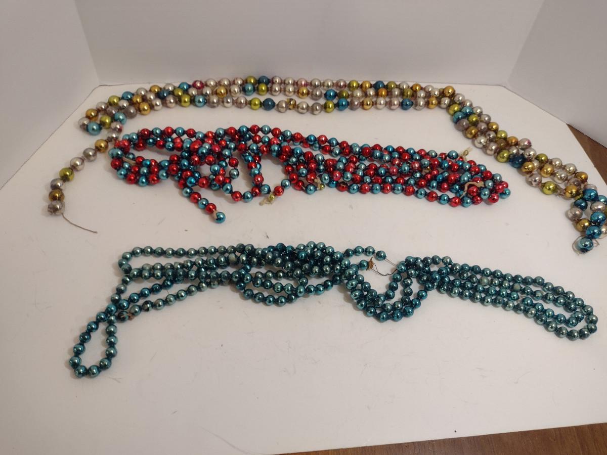 Collection of Vintage MCM Glass Bead String Garland- Three Strands. Two 8' sections, One 11' section. Items are in used, vintage condition and have some damaged beads- see all pictures.