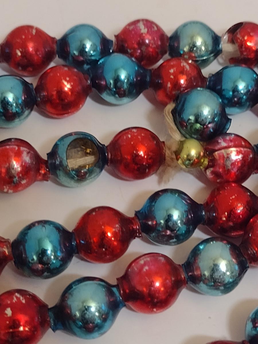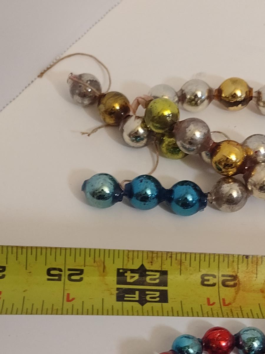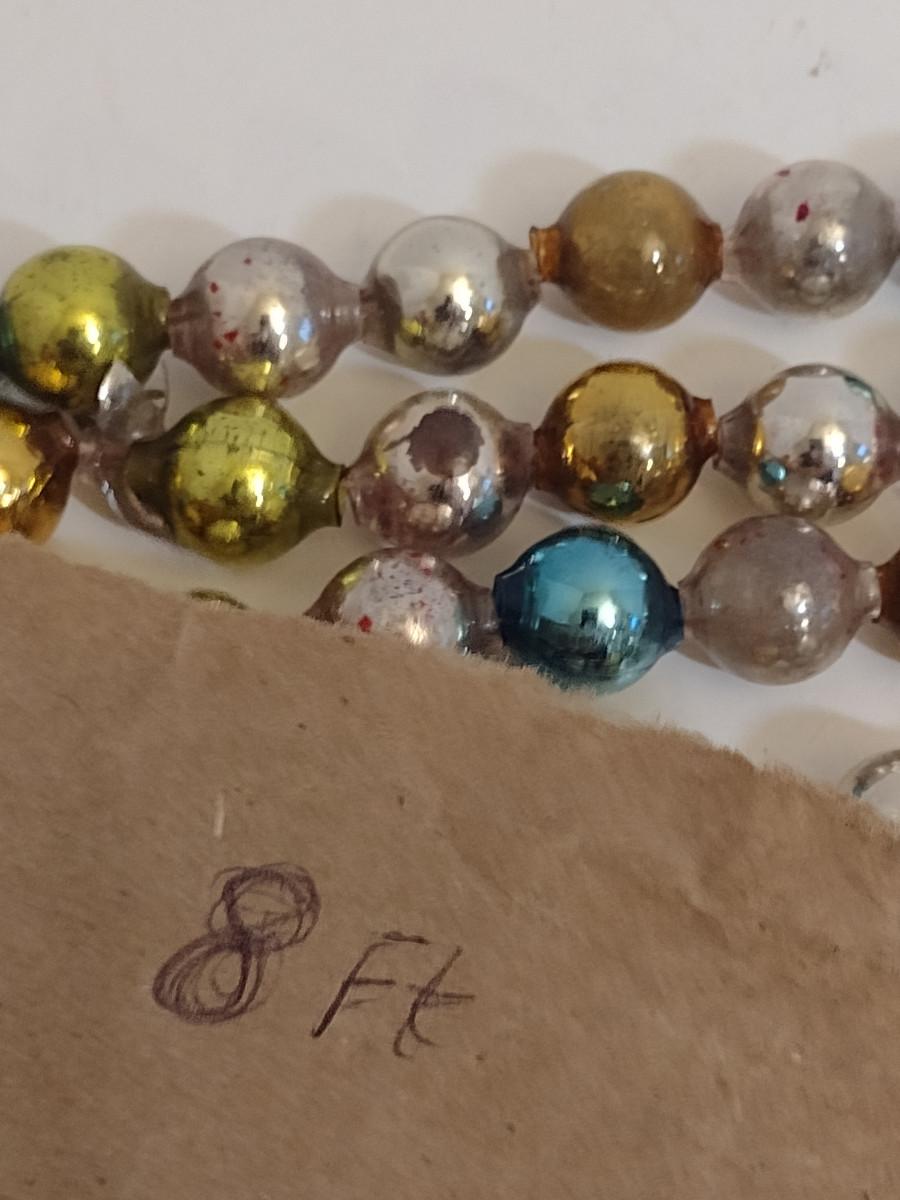 Collection of Vintage MCM Glass Bead String Garland- Three Strands. Two 8' sections, One 11' section. Items are in used, vintage condition and have some damaged beads- see all pictures.