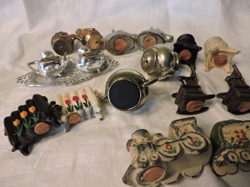 8 Sets of vintage metal and cast iron salt and pepper shakers. **Please read Terms and Conditions before placing a bid. Pick up is Wednesday, September 25 from 4pm to 7pm and Saturday, September 28 from 9am to 1pm in Williamstown, NJ. All sales are final. All sales are as is, where is. Please review all photos. Any props included in photos are not included in listing. All measurements are approximate.
