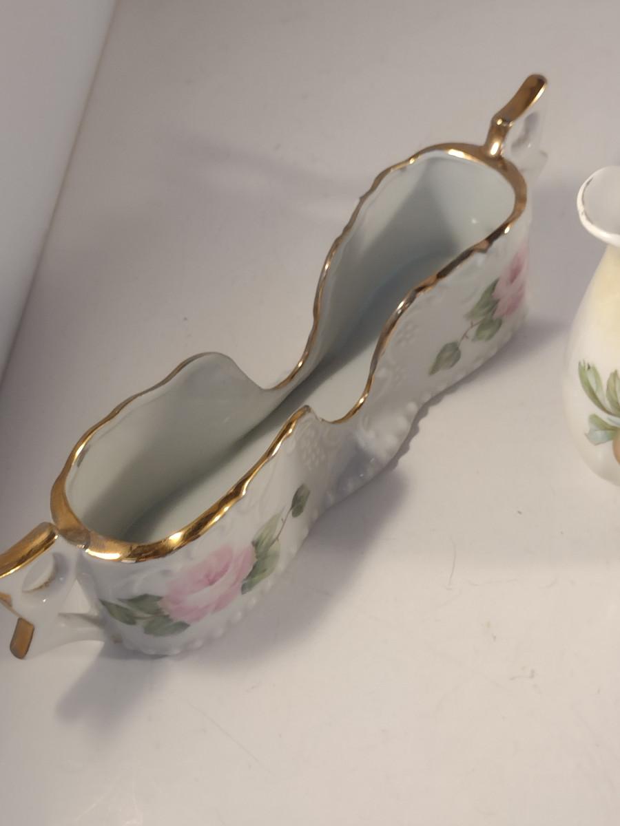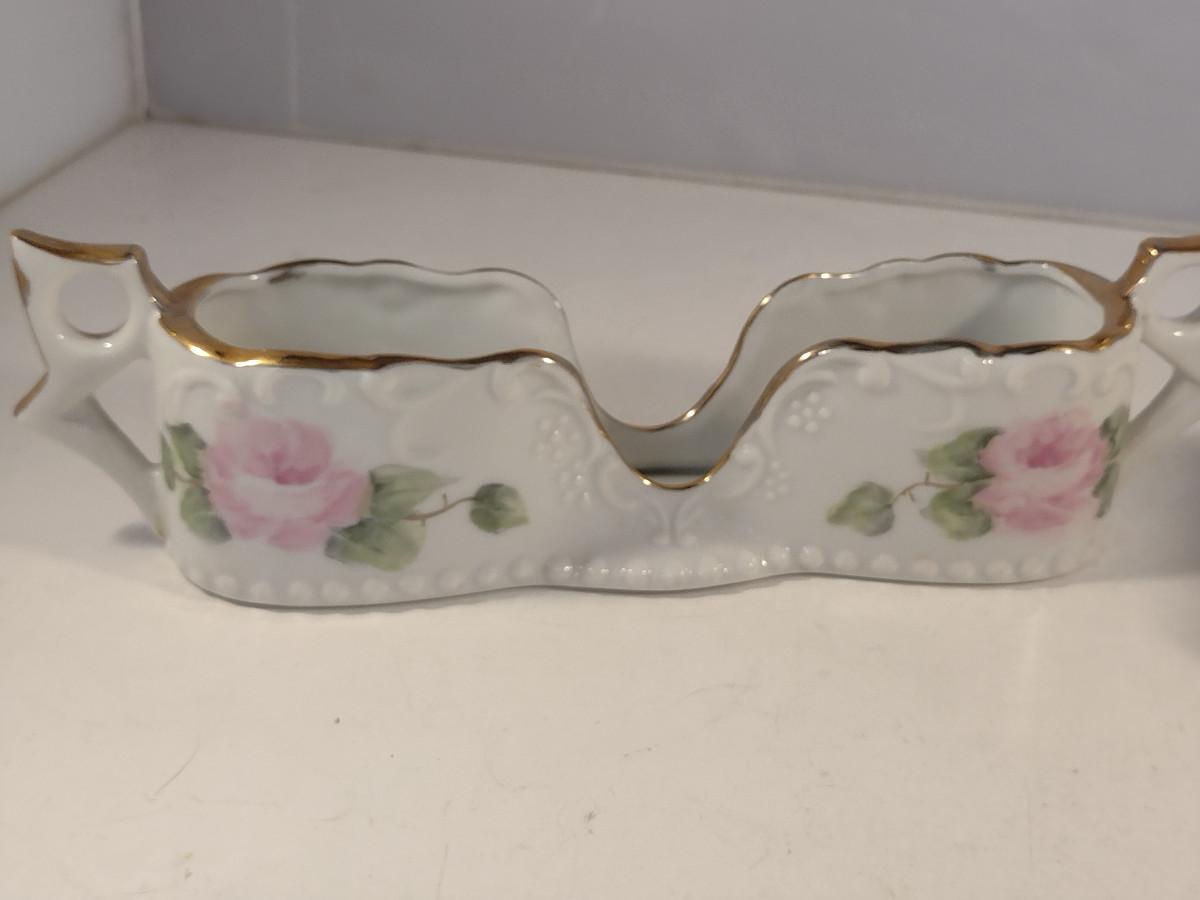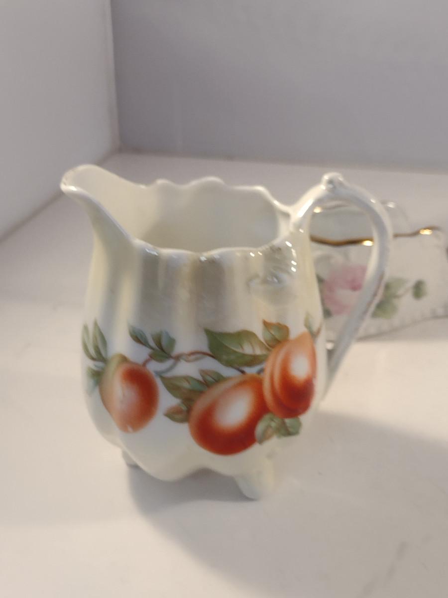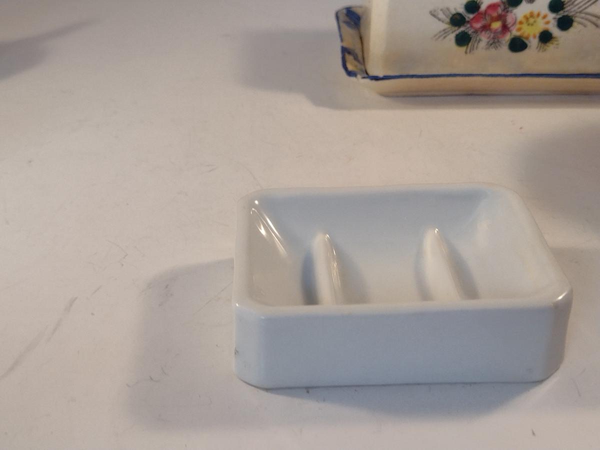 Collection of Vintage Porcelain Housewares. Pitchers, butter dish, spoon holder, soap dish. All items are in used condition- please see all pictures.
