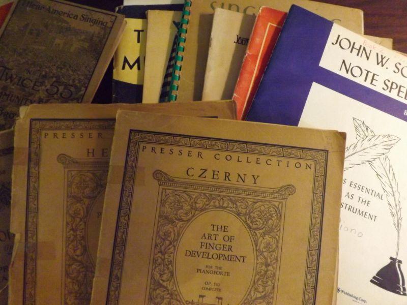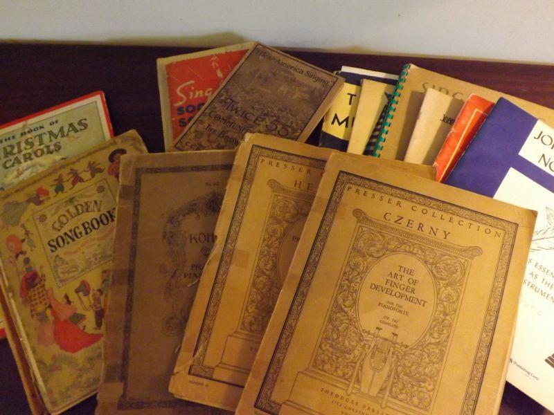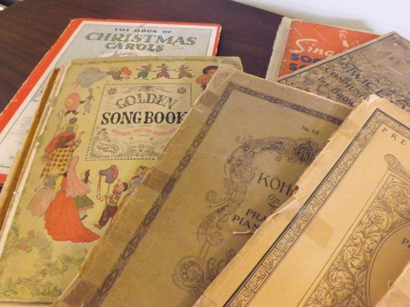 Collection of vintage sheet music books. **Please read Terms and Conditions before placing a bid. Pick up is Sunday, September 1, 2019 from 10am to 4pm in Williamstown. All sales are final. All sales are as is, where is. Please review all photos. Any props included in photos are not included in listing. All measurements are approximate. From home with cats.