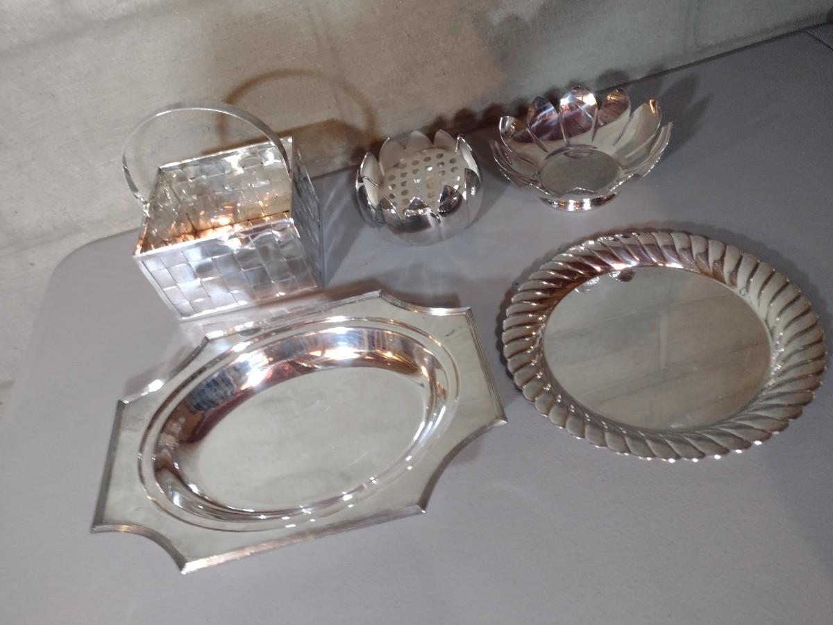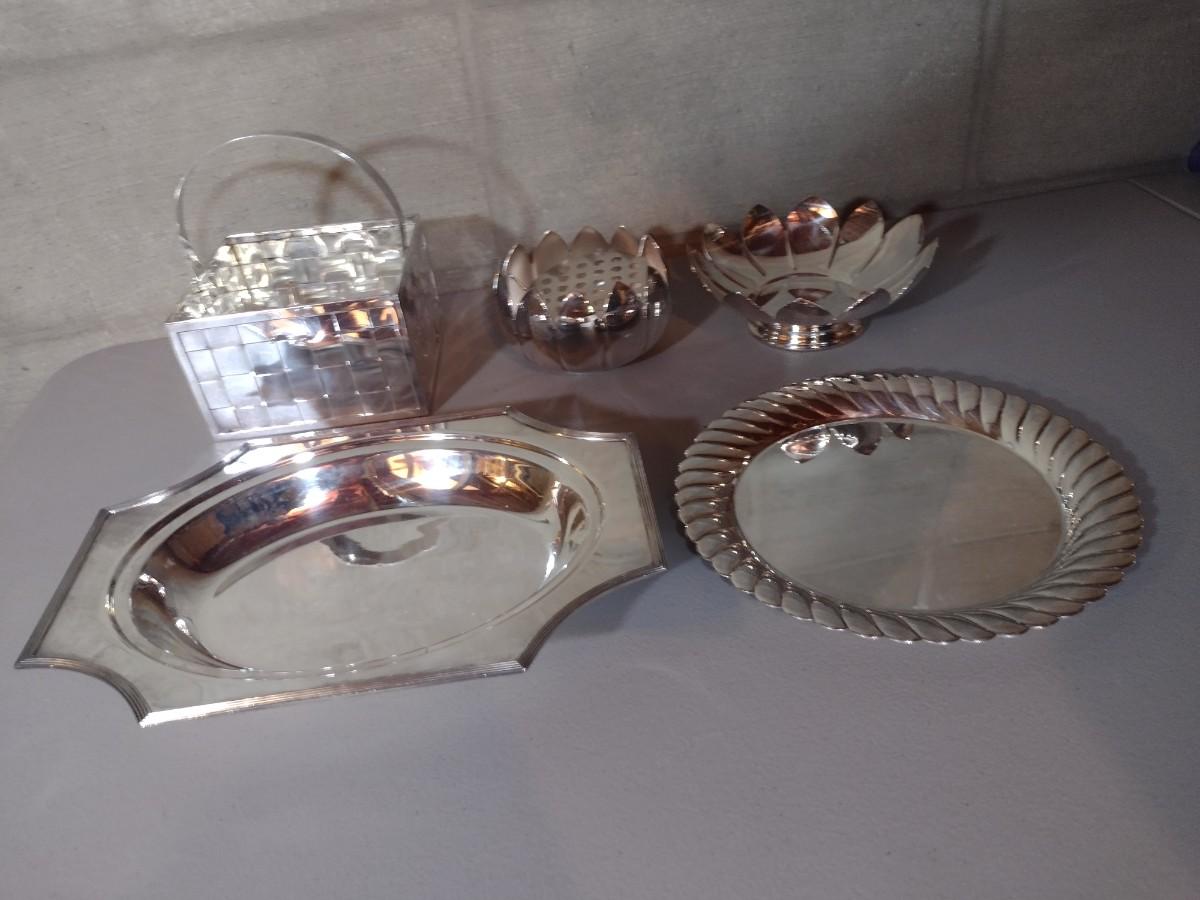 Collection of Vintage Silver Plate Service Platters and Table Pieces