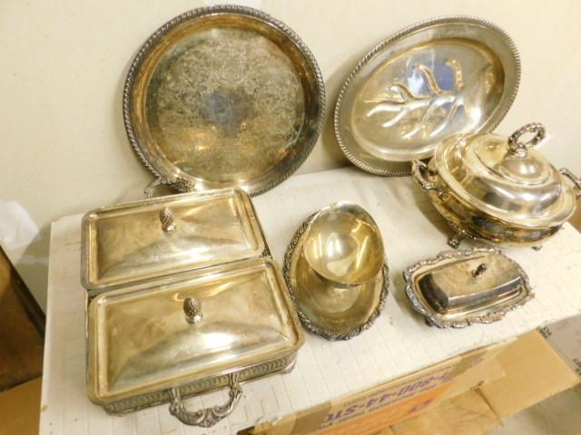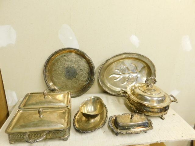 Collection of Vintage Silver Plated Serving Dishes and Platters