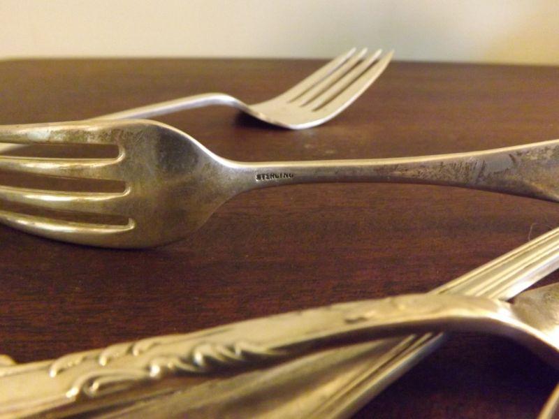 Collection of vintage sterling flatware. **Please read Terms and Conditions before placing a bid. Pick up is Sunday, September 1, 2019 from 10am to 4pm in Williamstown. All sales are final. All sales are as is, where is. Please review all photos. Any props included in photos are not included in listing. All measurements are approximate.