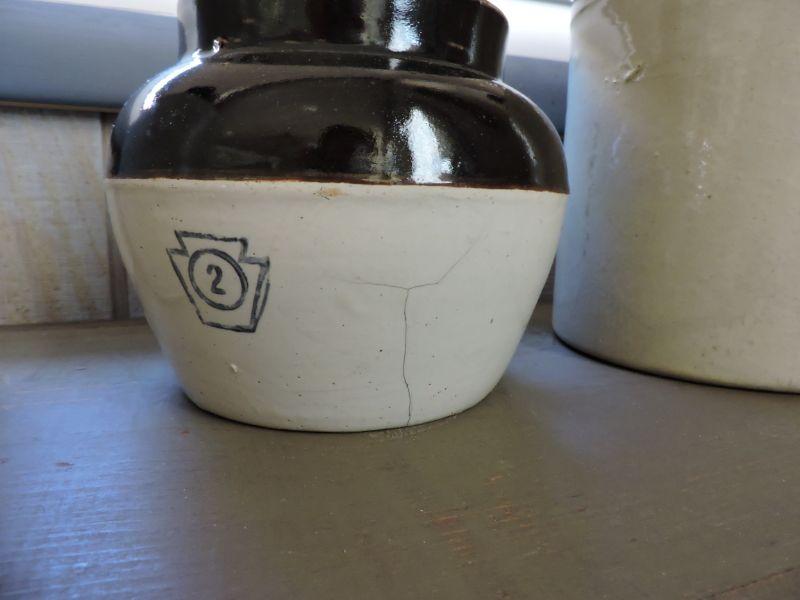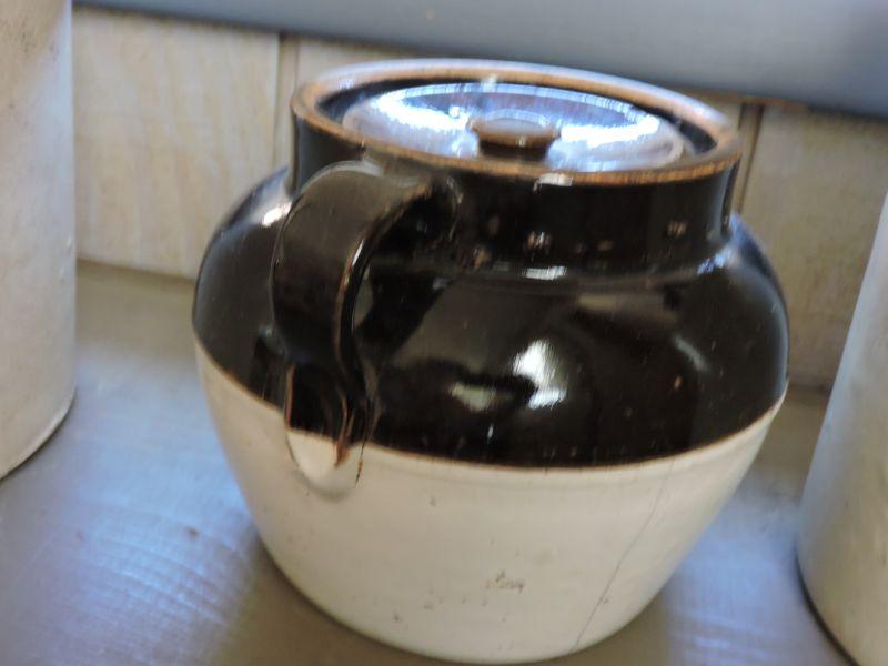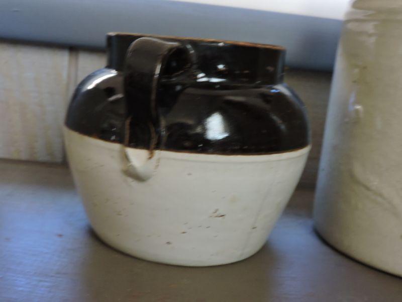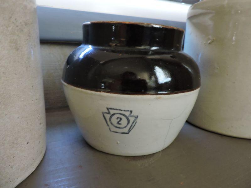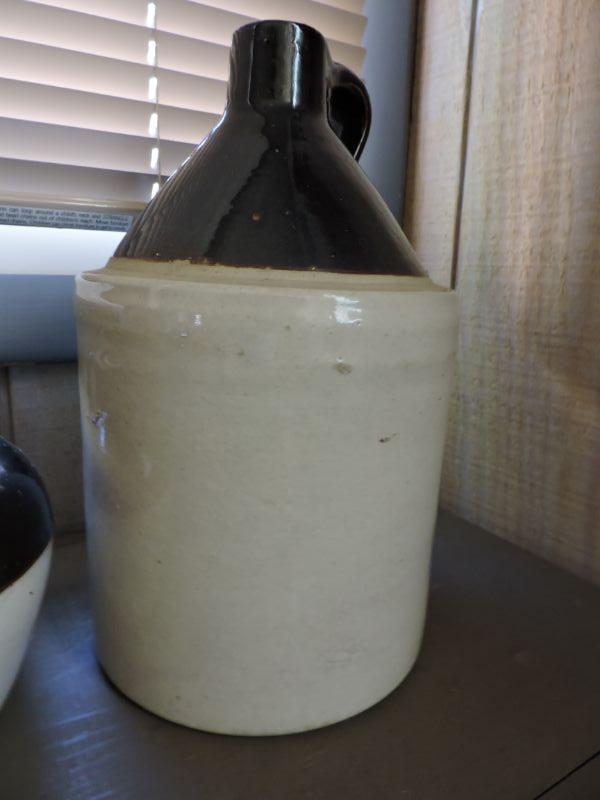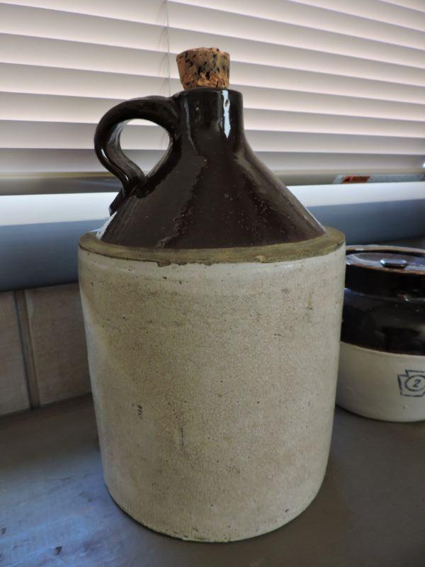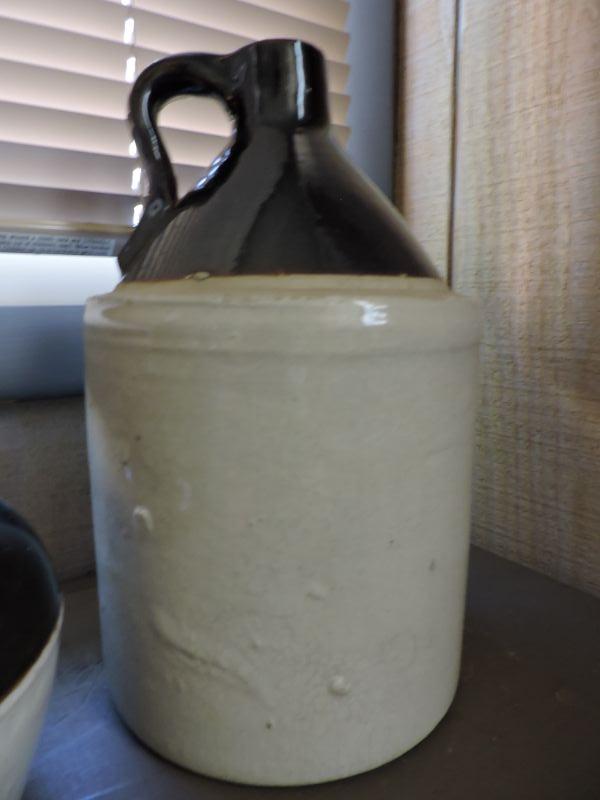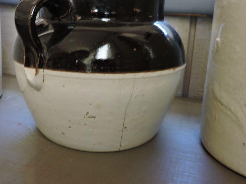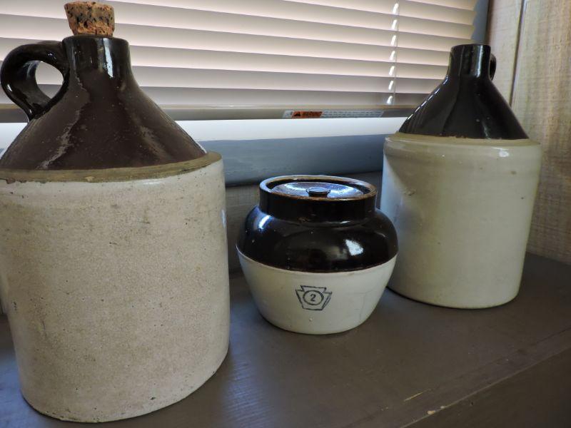 Vintage stoneware jugs and covered pot. **Please read Terms and Conditions before placing a bid. Pick up is Sunday, September 15, 2019 from 11am to 4pm and Tuesday, September 17 from 4pm-7pm in Sicklerville. All sales are final. All sales are as is, where is. Please review all photos. Any props included in photos are not included in listing. All measurements are approximate.