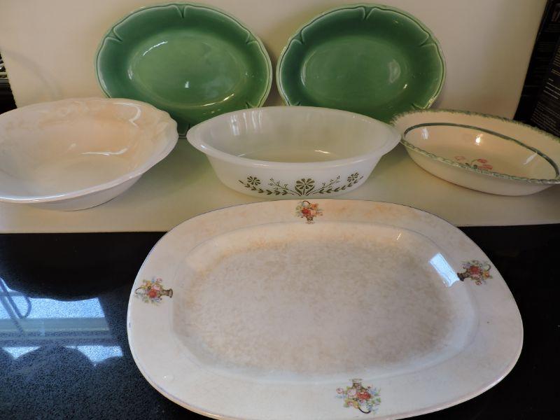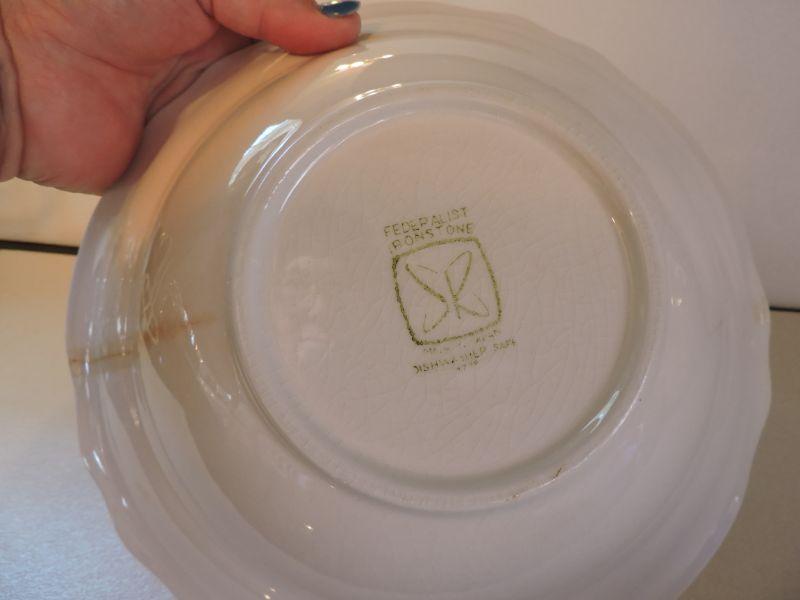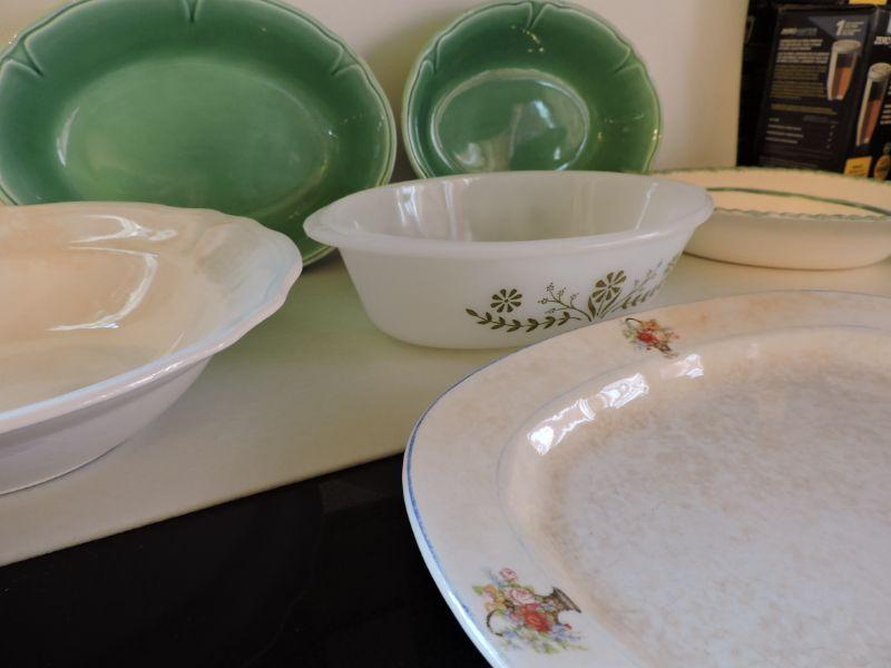 Plates and bowls - Glasbake, Edwin Knowles, Mount Clemens, Federalist Ironstone **Please read Terms and Conditions before placing a bid. Pick up is Wednesday, September 25 from 4pm to 7pm and Saturday, September 28 from 9am to 1pm in Williamstown, NJ. All sales are final. All sales are as is, where is. Please review all photos. Any props included in photos are not included in listing. All measurements are approximate.