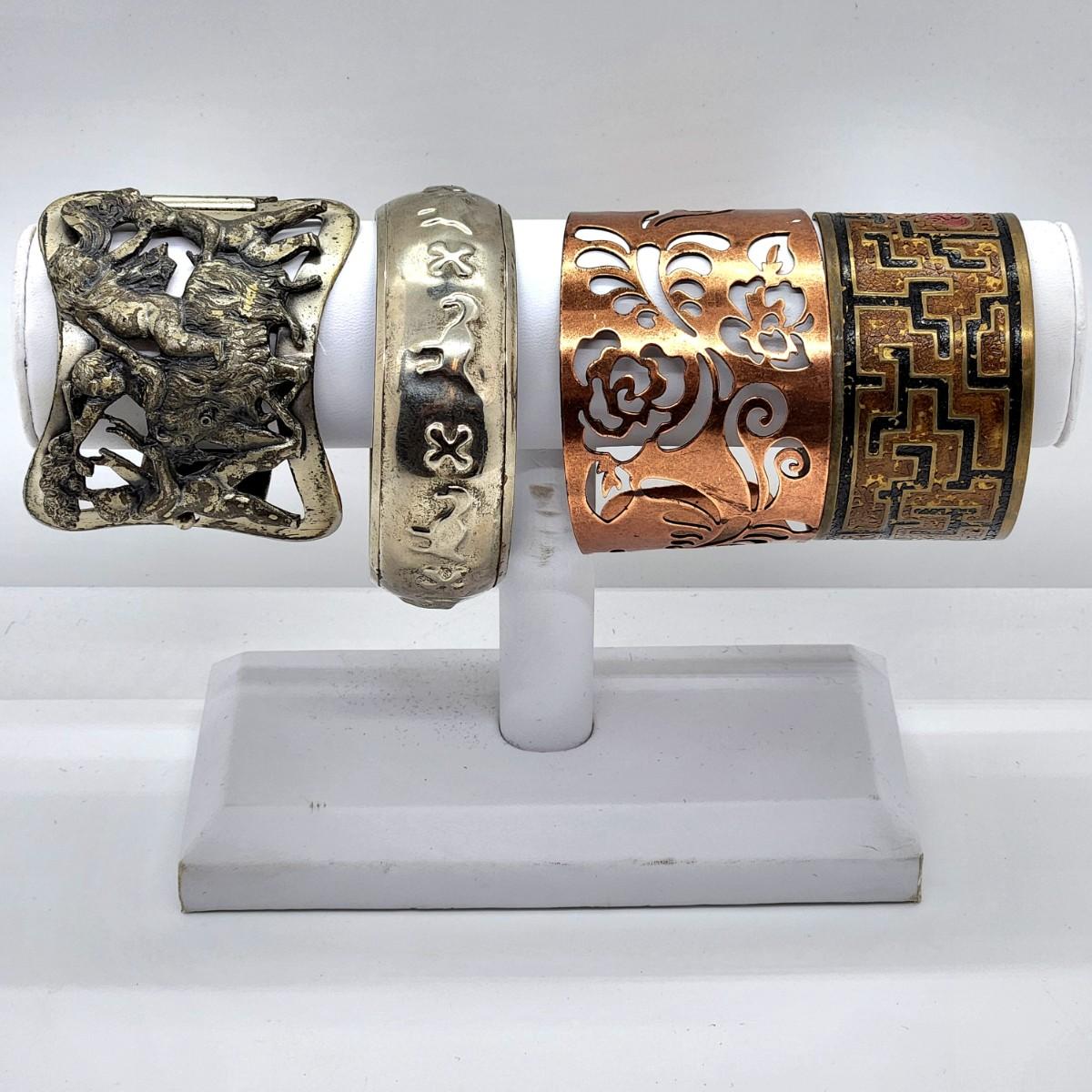 This lot is featuring such a diverse collection of bracelets! The cut-out cuff bracelet is believed to be copper. Conditions of items vary. Please see all pictures as they are the best representation of the items. The pictures show condition, measurements if taken, and what is included in the lot. Due to the large amount that we photograph and the time frame, we are not always able to take measurements. All items unless noted, are pre-owned and have been used. If you purchased furniture, you must bring help. We do not allow one person to carry large furniture out on their own. Bring help, tools and a truck for the safety of our client’s homes, and your personal safety. Any damages that result to the property including walls, and floors due to moving of the furniture will be charged to the buyer. Company policy. Thank you.