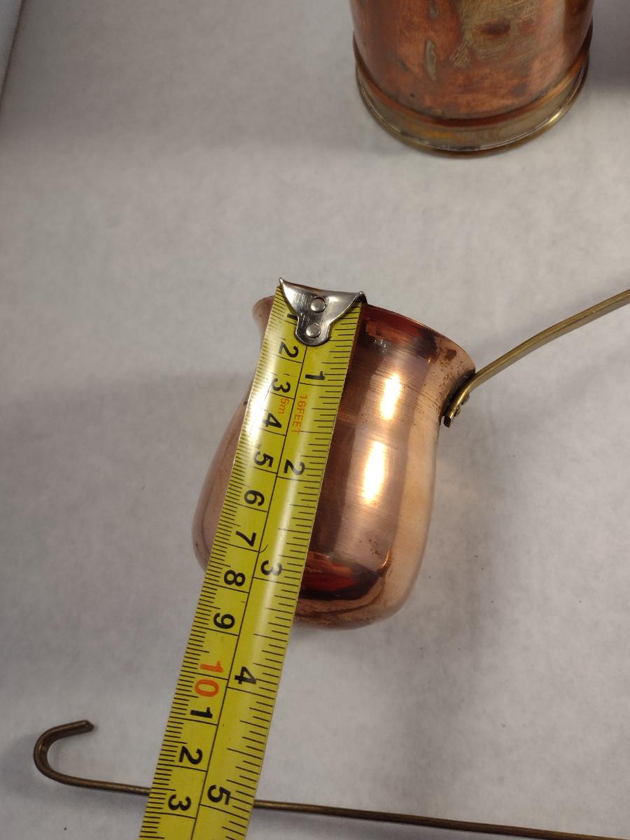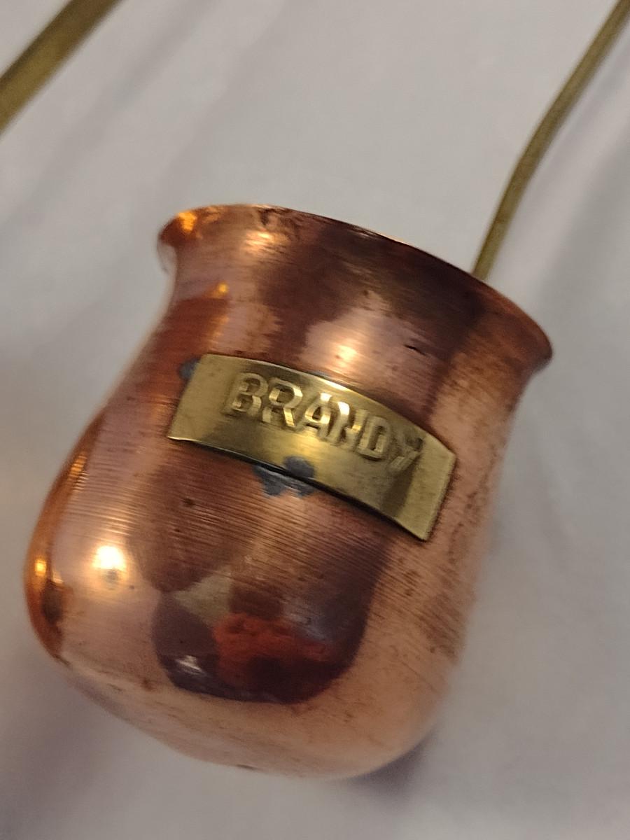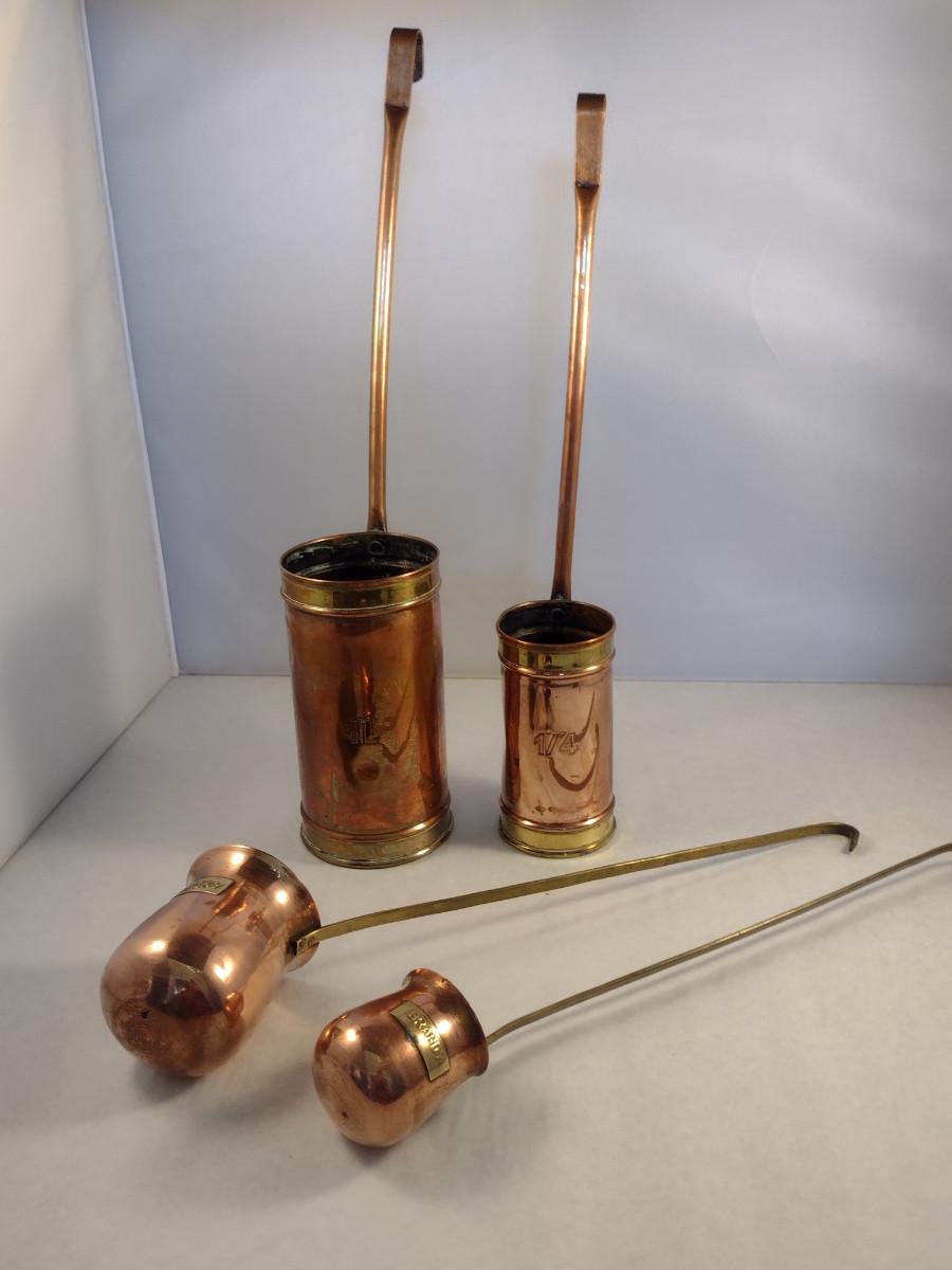Collection of Vintage Copper Alcohol Dippers. Assorted sizes- 1 liter, 1/4, whiskey, and brandy.