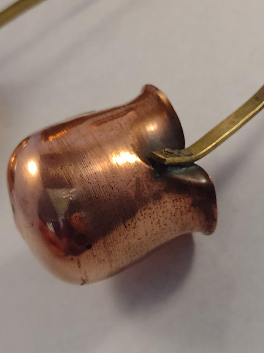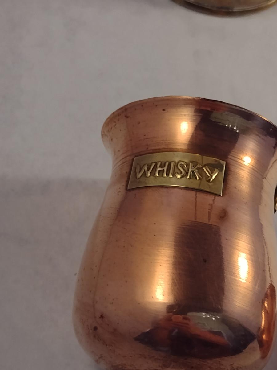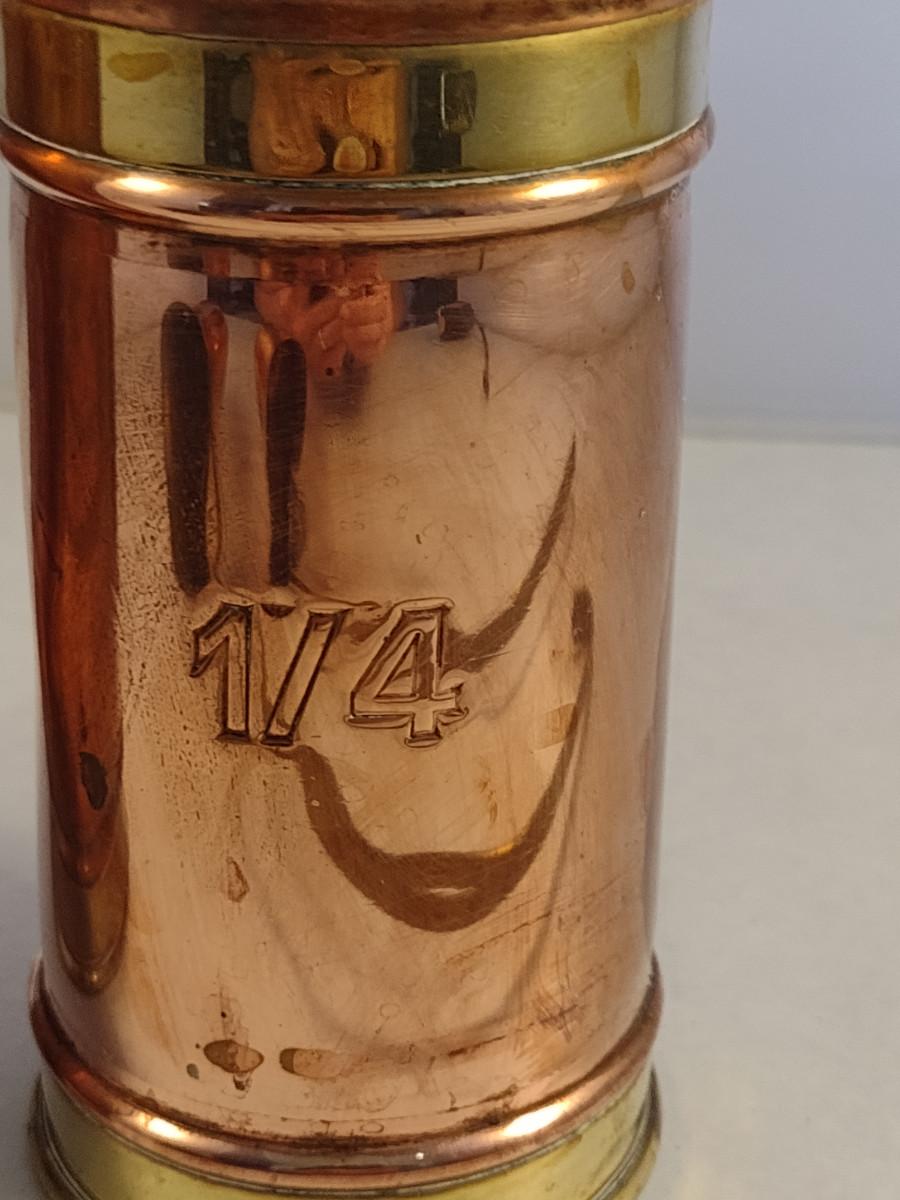 Collection of Vintage Copper Alcohol Dippers. Assorted sizes- 1 liter, 1/4, whiskey, and brandy.