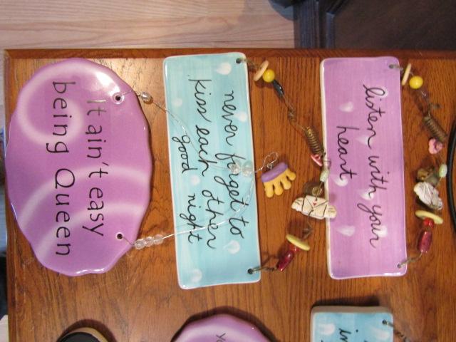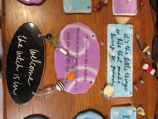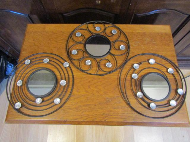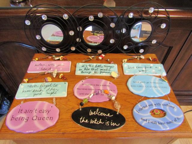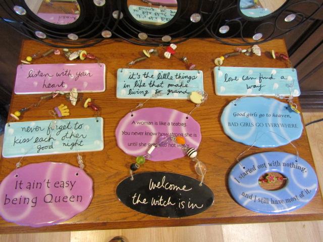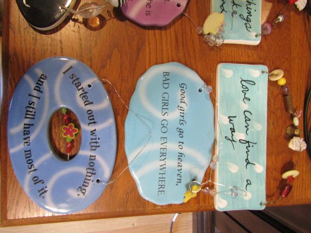 Collection of Wall Decor. Wire framed mirrors (3) and hanging plaques with catchphrases.