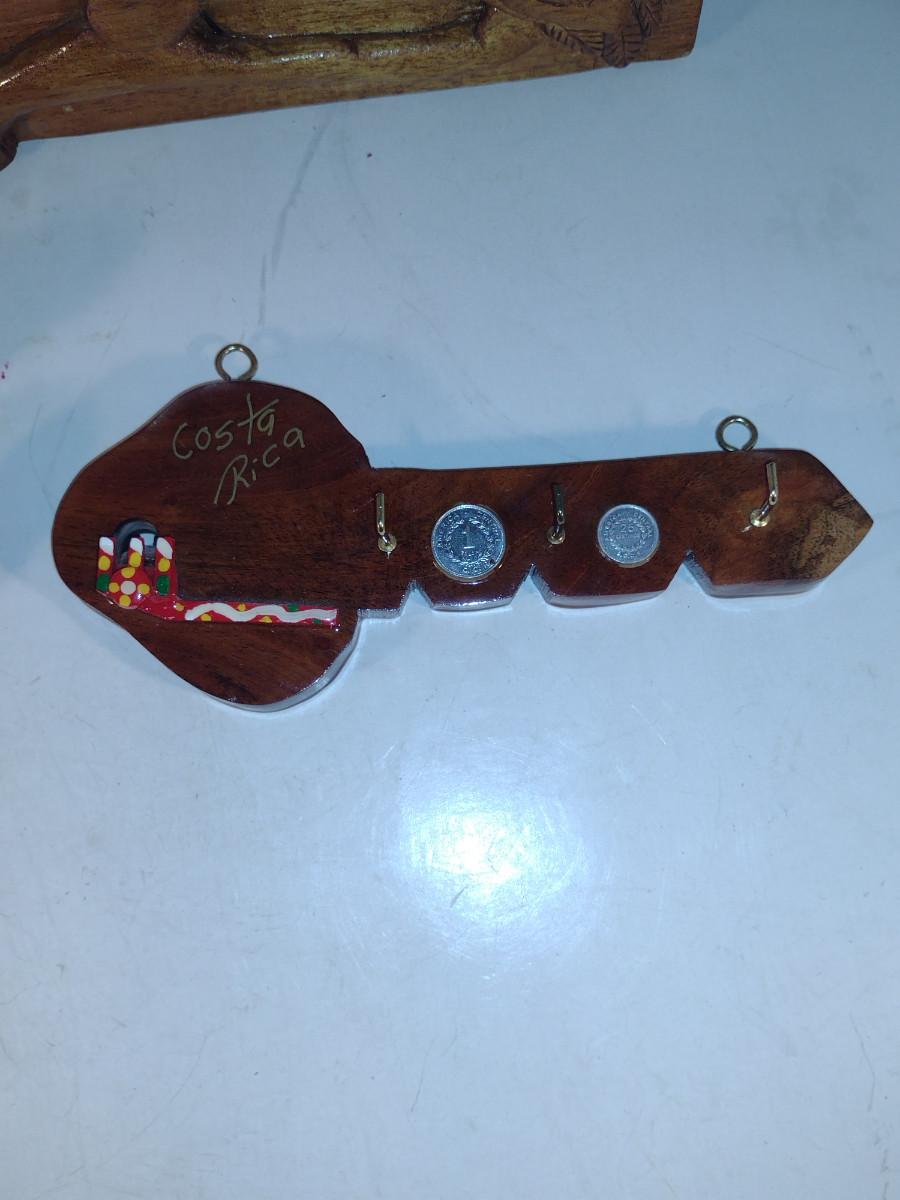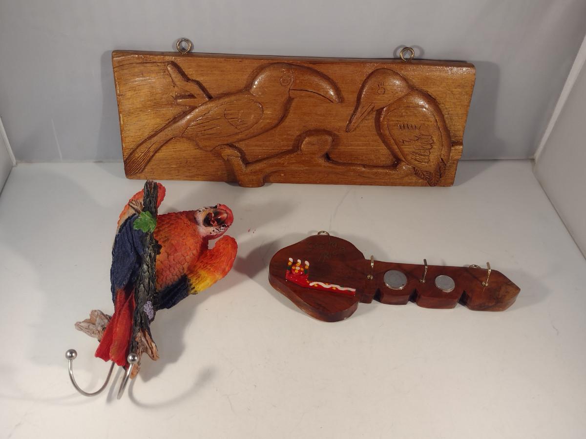 Collection of Wall Hangings- Hooks and Carved Wooden Plaque