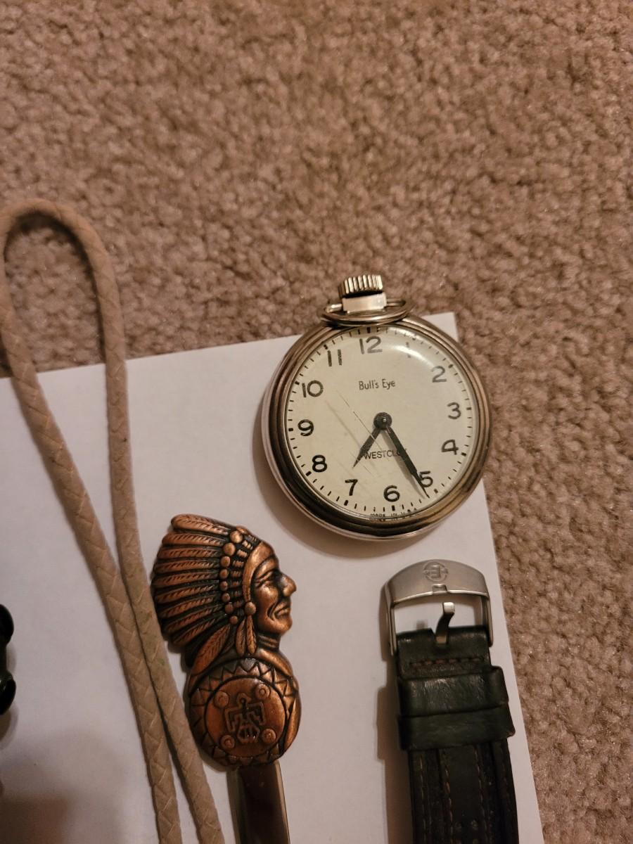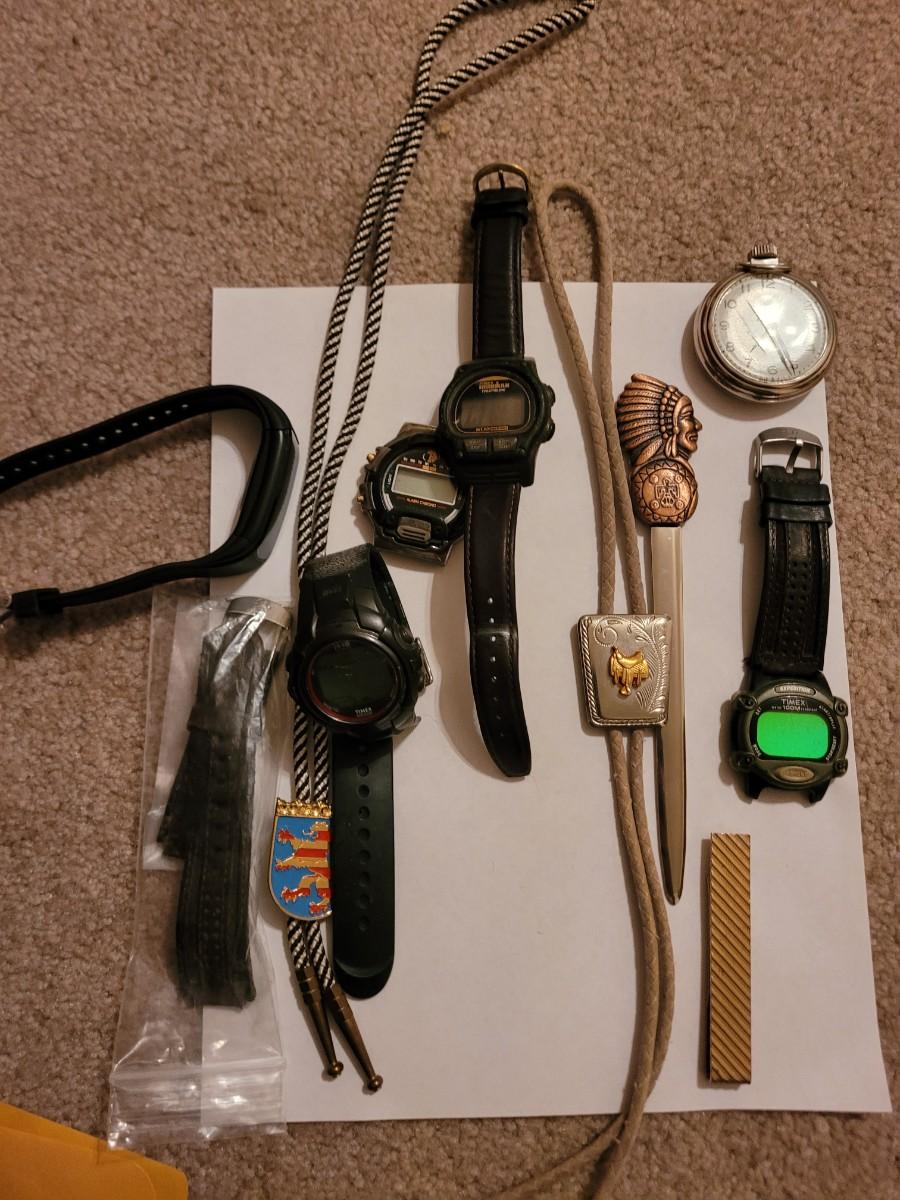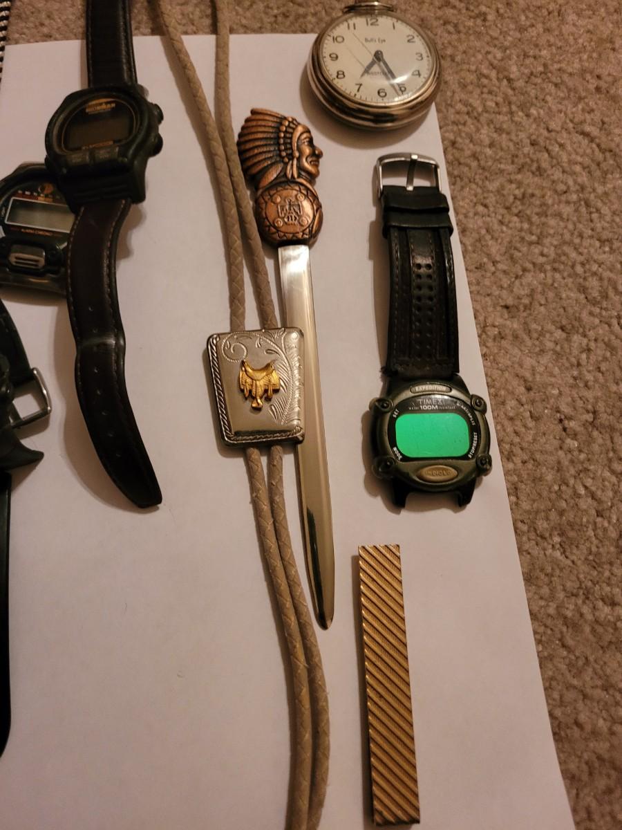Collection of watches, bolo ties letter opener