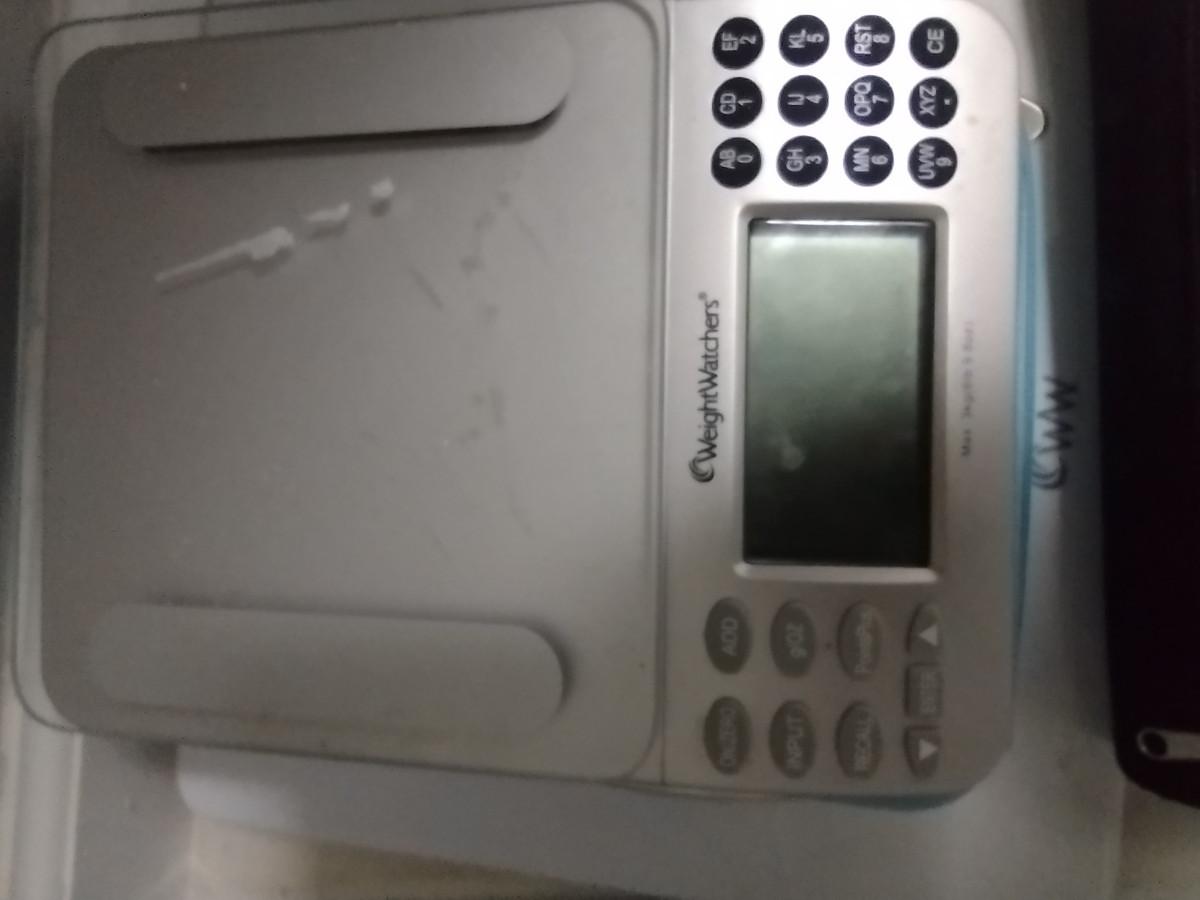 Collection of Weight Watchers Scales and Literature- Kitchen Scale, Bathroom Scale, etc. Both scales appear to be in working condition, but kitchen scale needs new battery (9 volt).