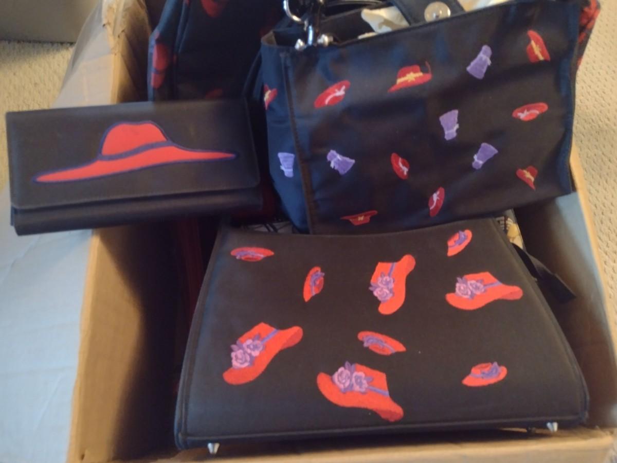 Collection of Woman's Fashion Purses, Handbags, and More-- Red Hat Theme Included