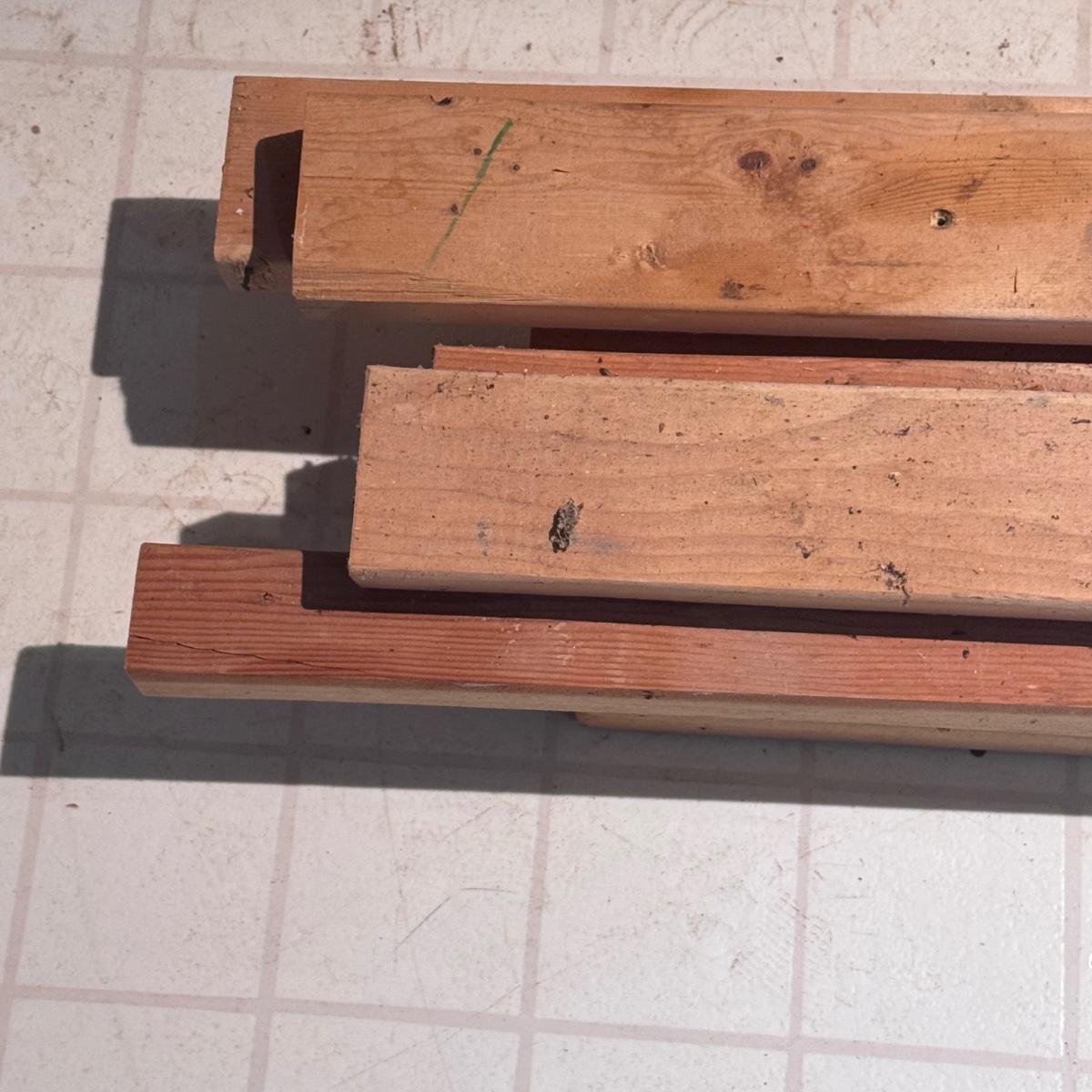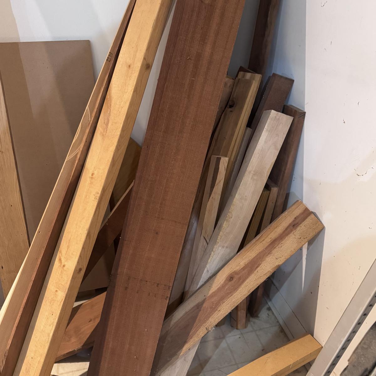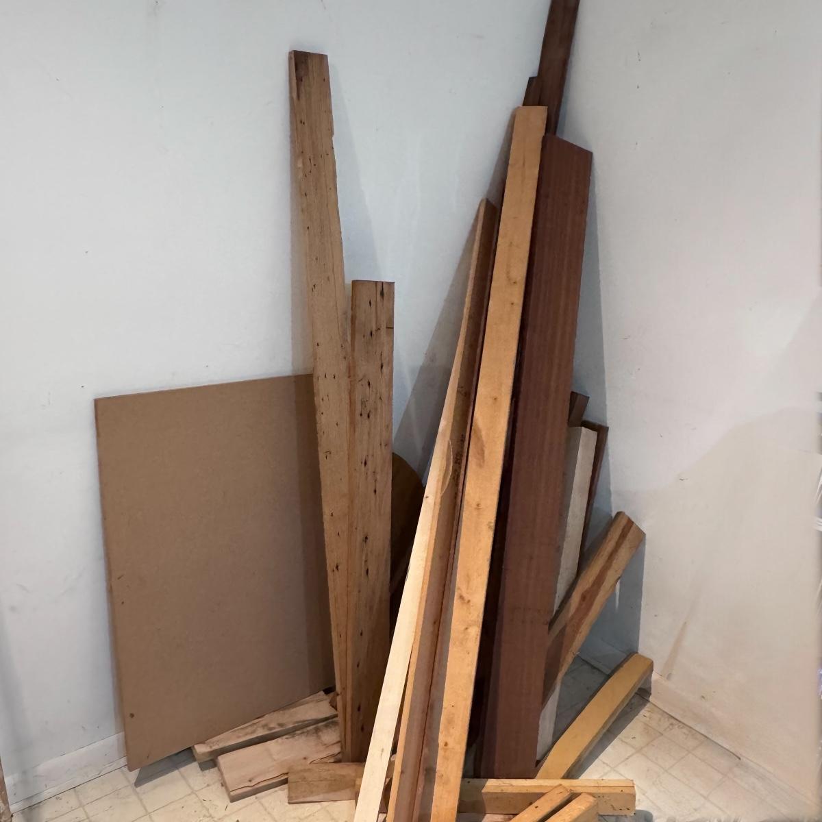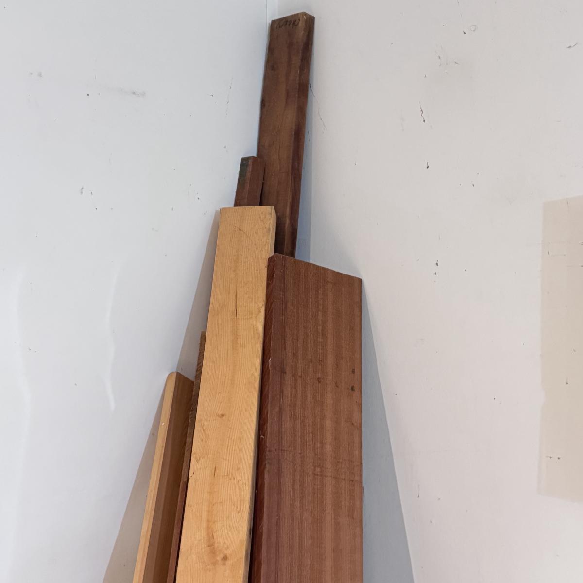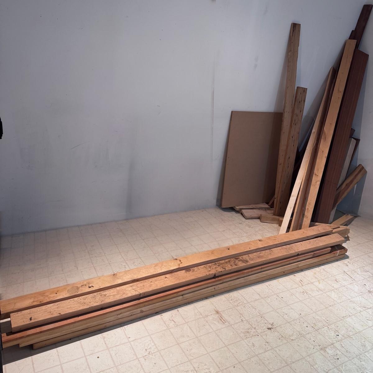 This lot includes over thirty pieces of various wood. You’ll find two pieces of chestnut wood. See pictures for more. The largest pieces are the ones shown in the last photo on the floor - most of them measure 104” x 3.25”H. Local pickup only.